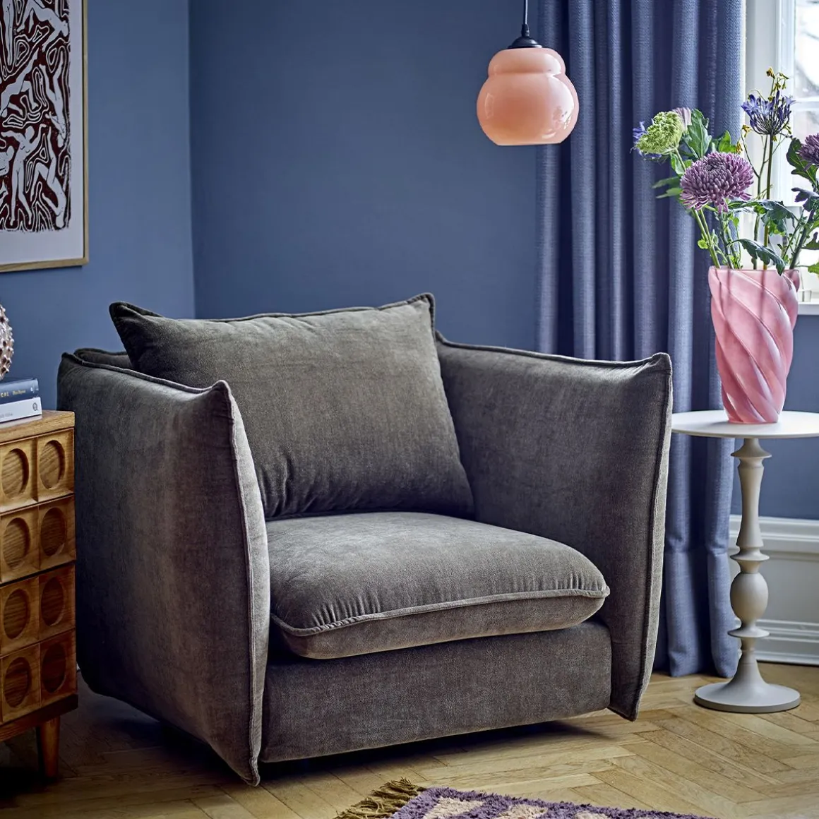 Le Chaise de salon Austin de Bloomingville est fait de velours doux dans une couleur verte foncée et poussiéreuse. Le tissu est en polyester et est extrêmement durable avec un martindale de 77 000. Avec son design élégant et son haut niveau de confort, le fauteuil lounge Austin s’adapte à tout intérieur.
