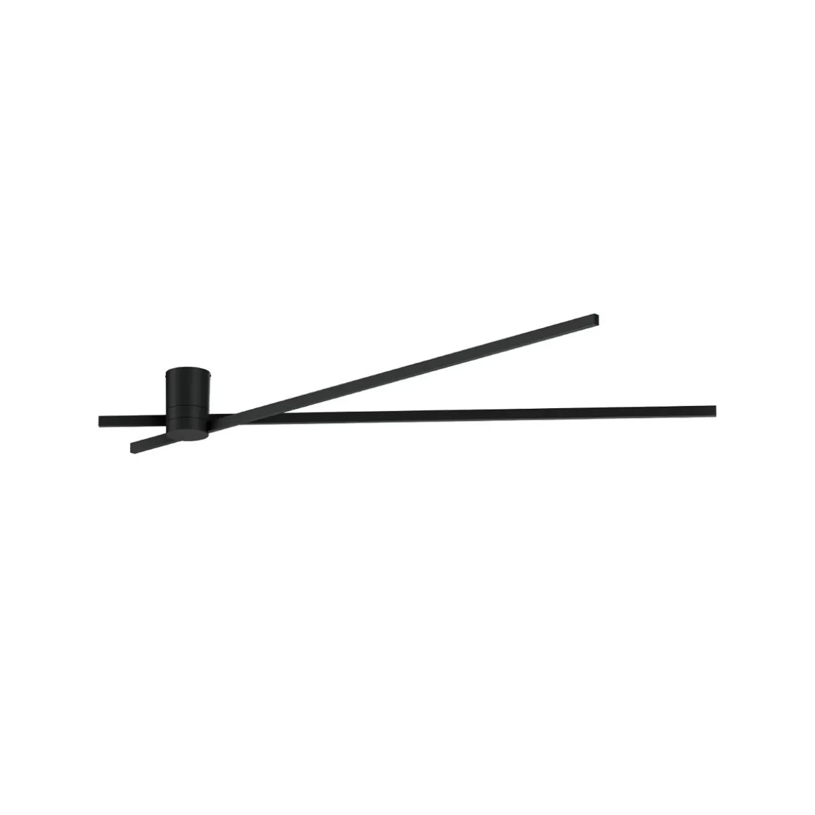 Plafonnier et luminaire mural indirect avec base cylindrique et deux baguettes lumineuses fines ; baguette inférieure pivotant jusuq’à 180°.