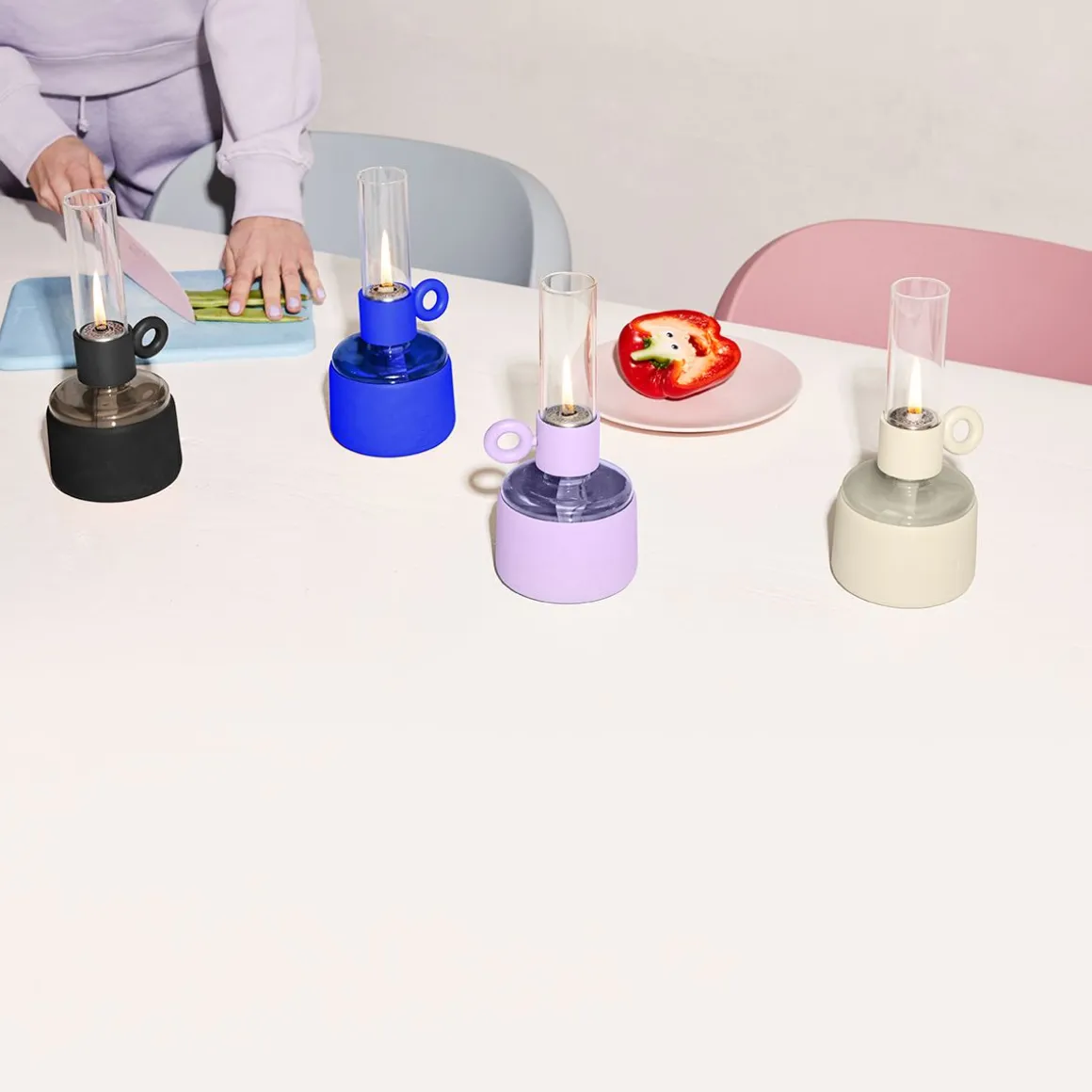 Flamtastique est la cheminée au bioéthanol surdimensionnée pour l’extérieur. Sa petite sœur, Flamtastique XS, apporte cette même ambiance de feu de camp à l’intérieur, à votre table. Nous avons transformé l’ancienne lampe à huile traditionnelle en une nouvelle version élégante. Flamtastique XS est une lampe à huile. Grâce à la partie transparente de son pied, vous pouvez toujours voir exactement la quantité d’huile restante. Et son revêtement en silicone mat rend cette lampe à huile en verre très résistante. Pour allonger la mèche, tournez simplement la anse. Pour des soirées inoubliables sans fin…