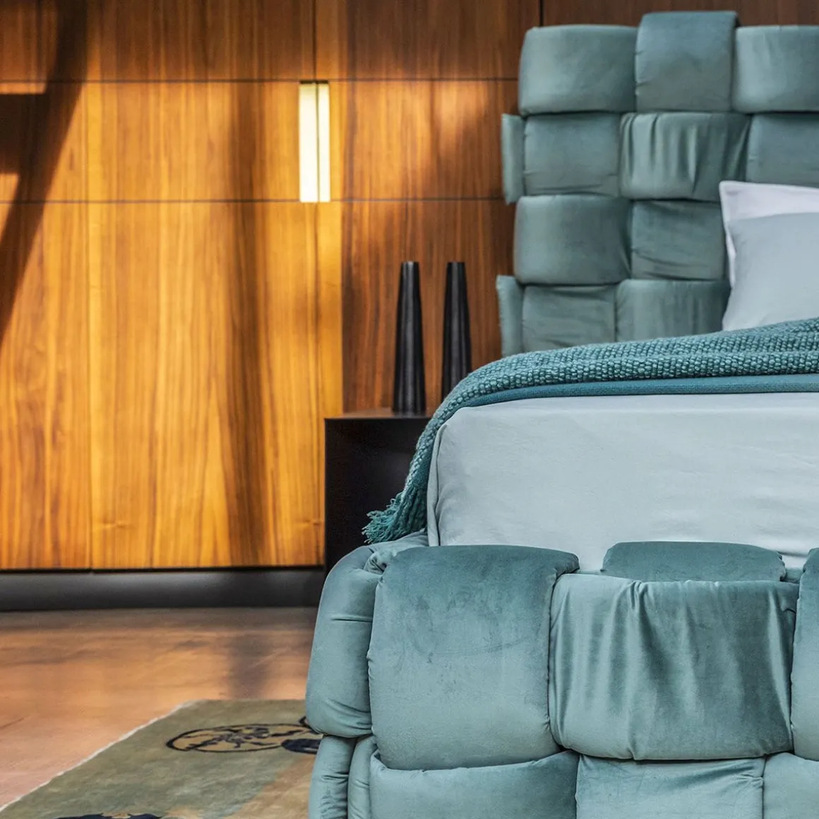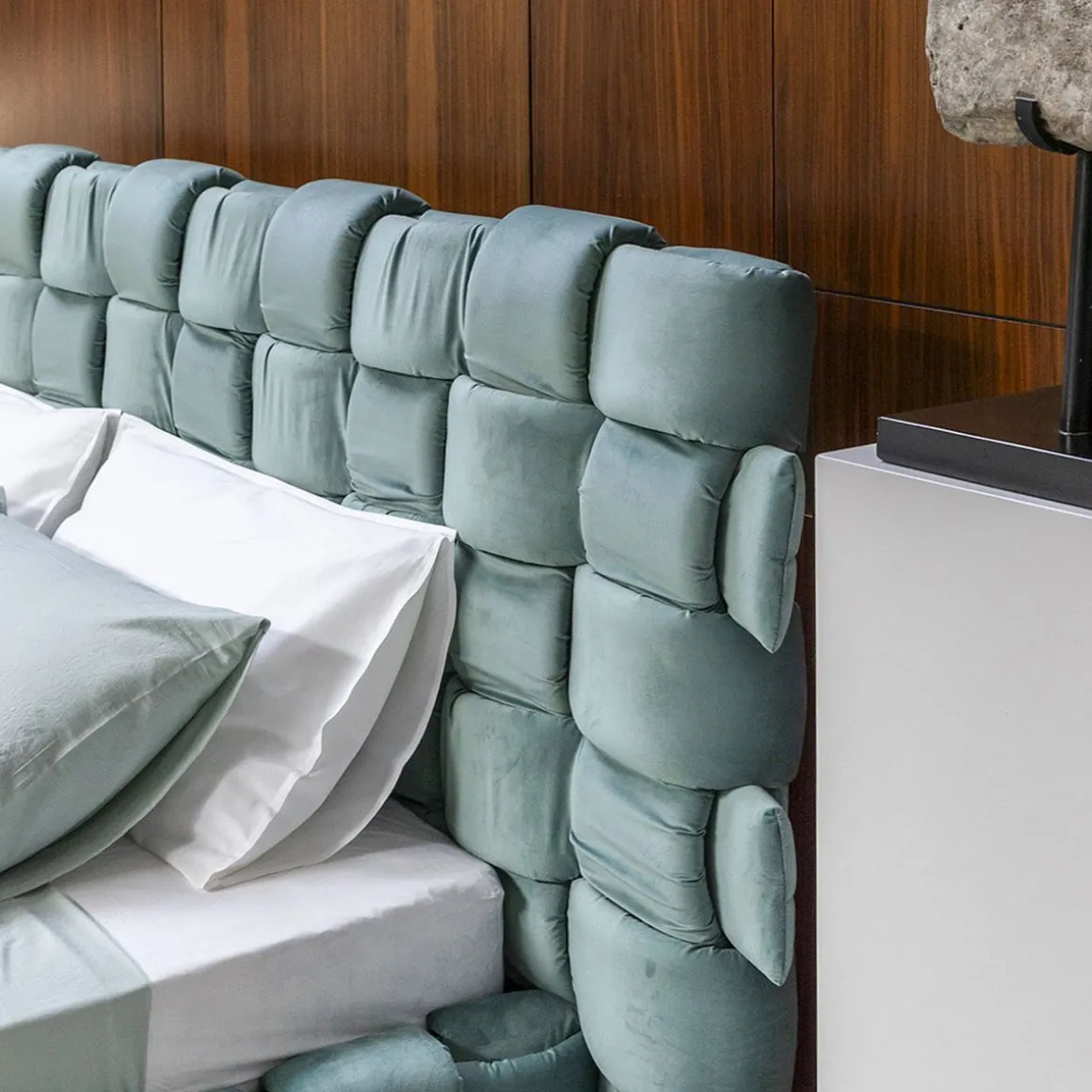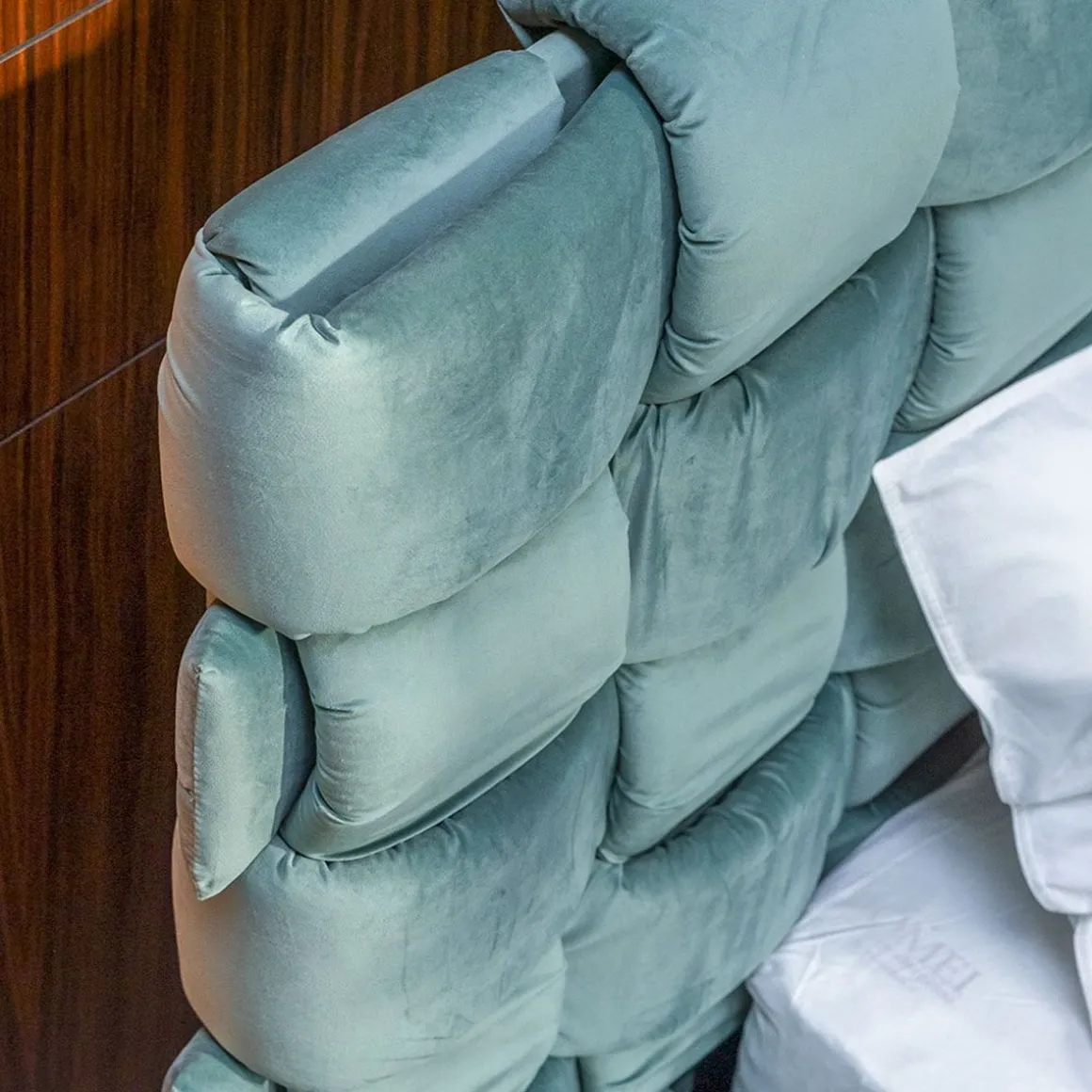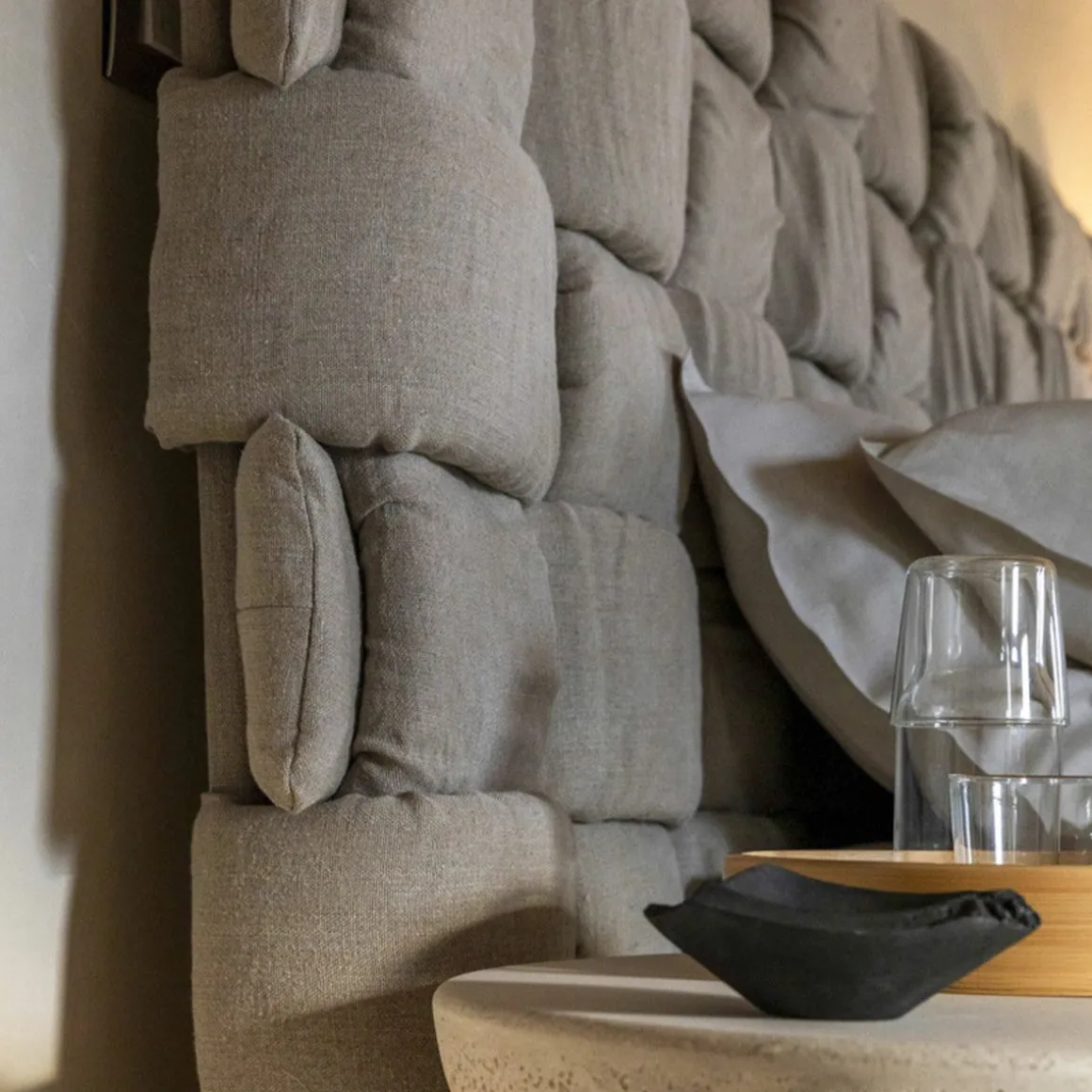 Matériaux : lit rembourré revêtement non-amovible, complet avec sommier à lattes en bois de hêtre de 160×200 ou 180x200cm