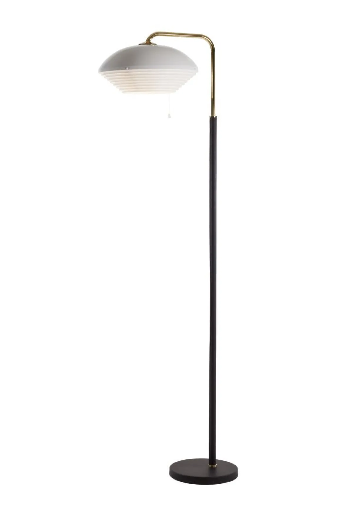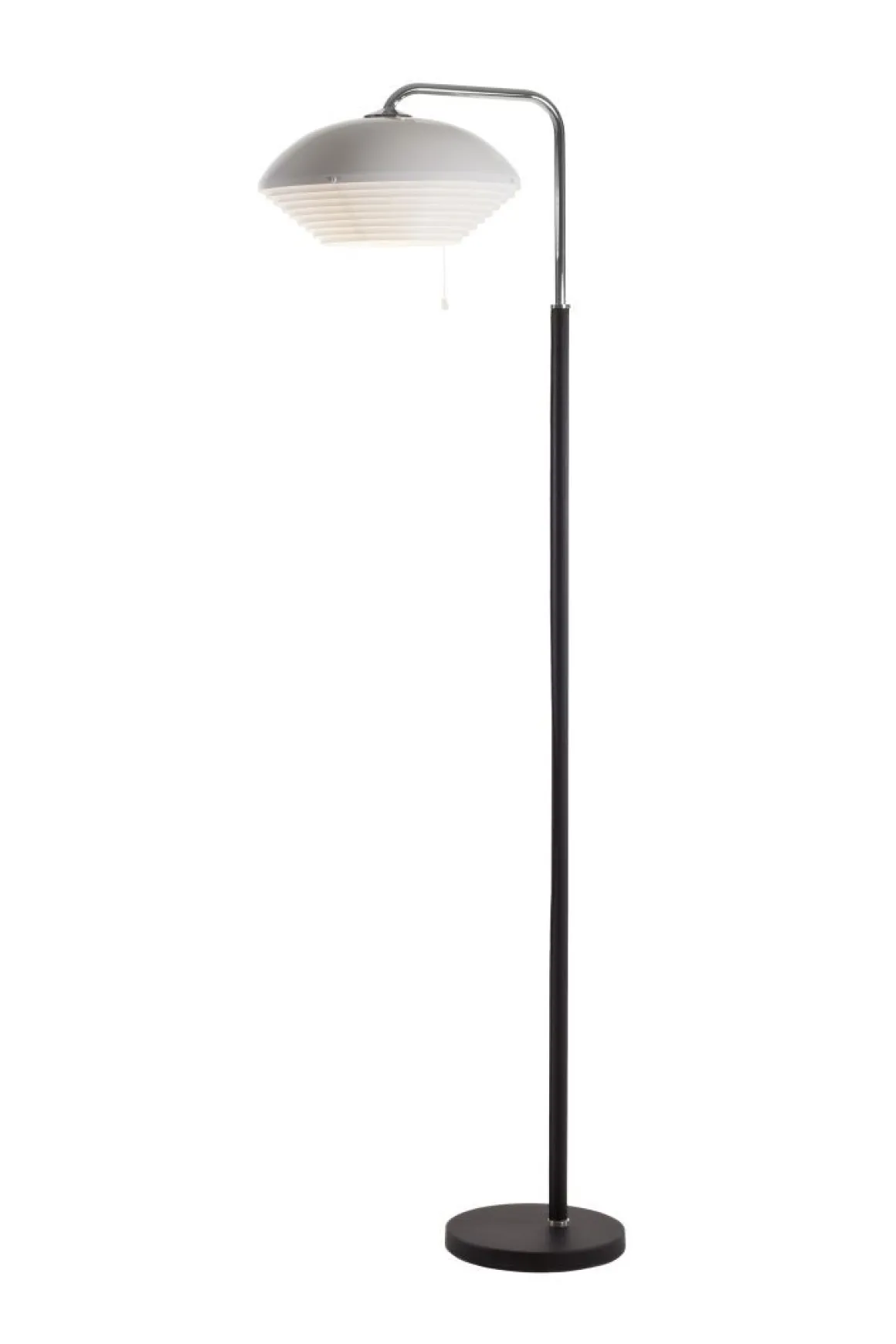 L’A811 est doté d’une seule ombre tournée à la main faite de délicates bandes métalliques laquées, qui empêchent l’éblouissement en diffusant la lumière uniformément. Le lampadaire A811, a été le dernier ajout à la gamme de lampadaires d’Alvar Aalto. Il a été créé pour l’Institut national des pensions, Helsinki dans les années 1950, mais n’a pas vu le jour avant 1965.