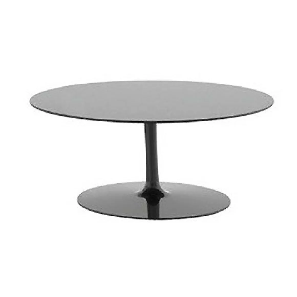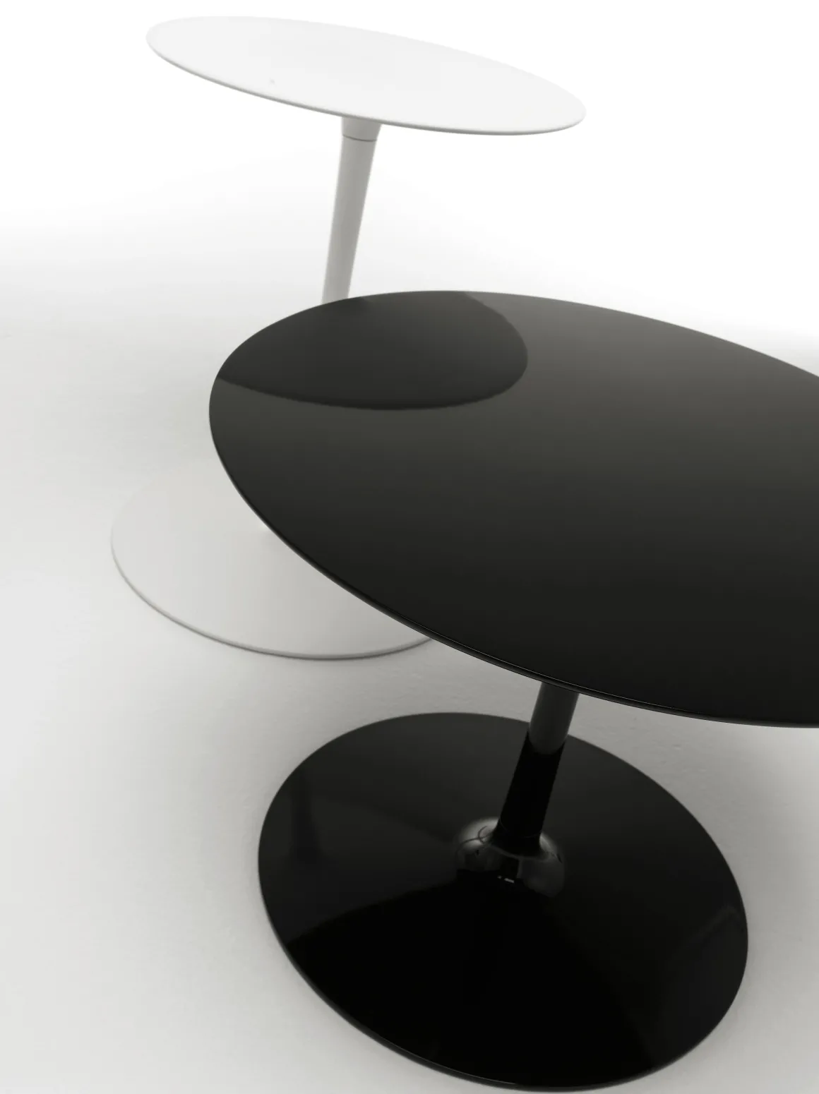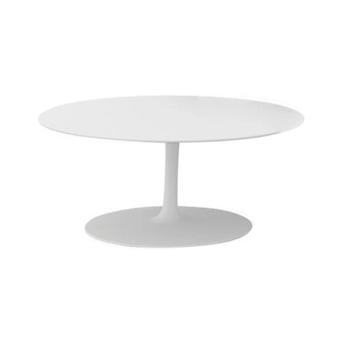 Matériaux : base avec pied central en aluminium laqué, plateau en cristalplant (blanc) ou ceramilux (noir)