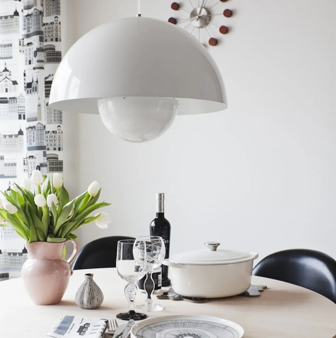 Flowerpot dans le monde du design, est une suspension coloré et ludique accroché dans des restaurants et des expositions, et très bientôt, dans les maisons de tous les jours. Le FlowerPot avec ses deux sphères semi-circulaires face à face a longtemps prouvé sa qualité de conception durable et est tout aussi synonyme de notre temps. Dans ses jeunes années, Panton a souvent quitté Copenhague dans un Volkswagen à la recherche étrange pour une randonnée à travers l’Europe, en passant chez les autres designers pour s’inspirer et partager des idées et de bons repas.
