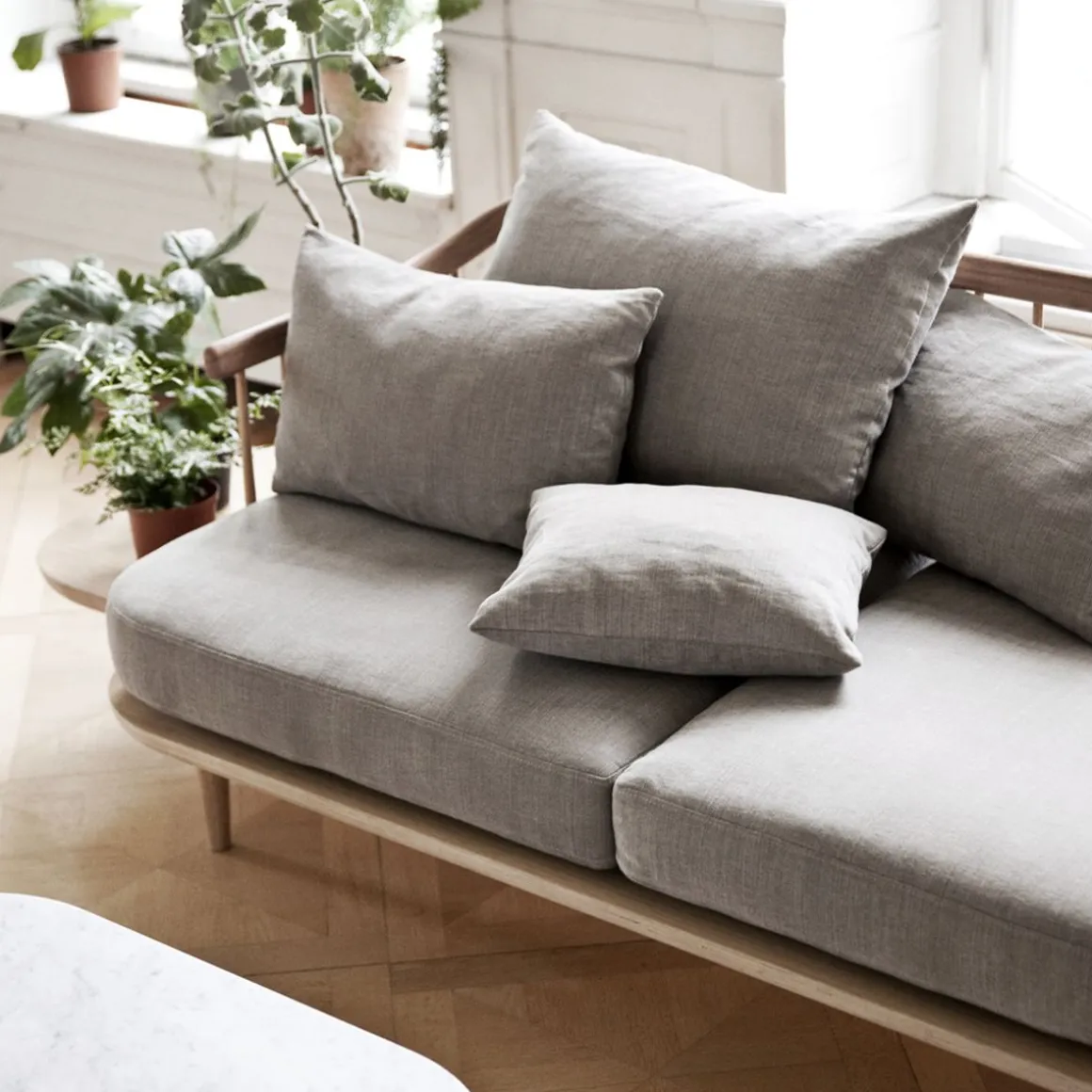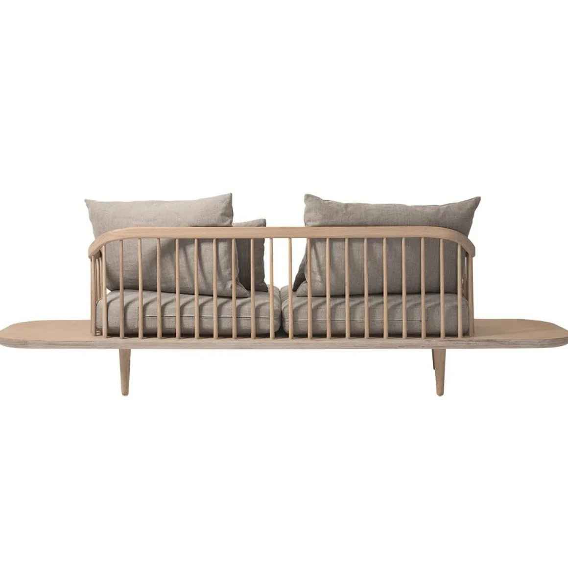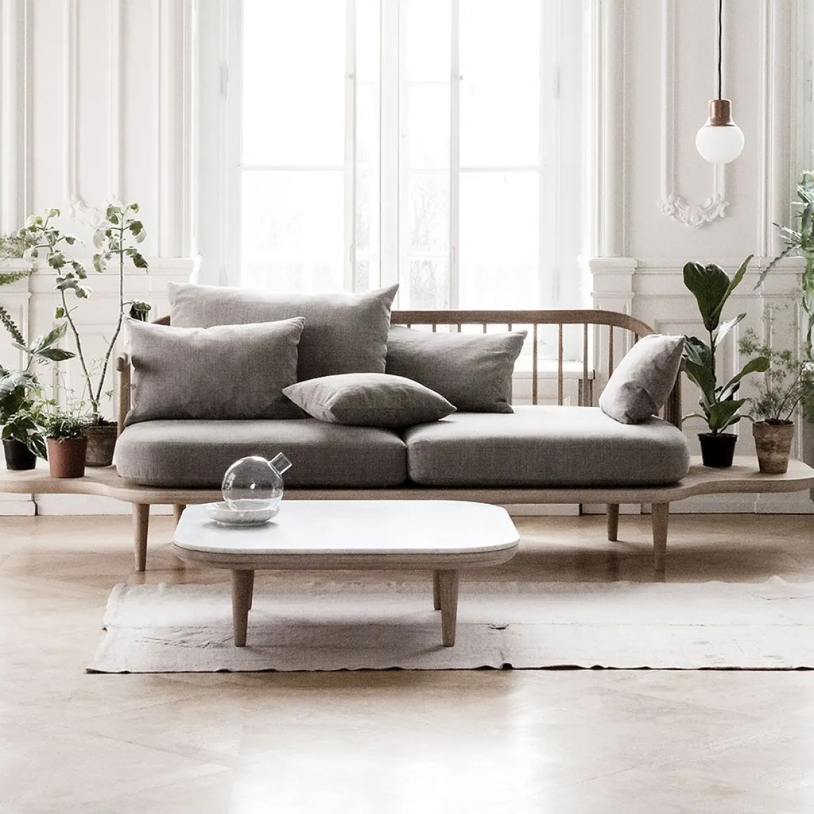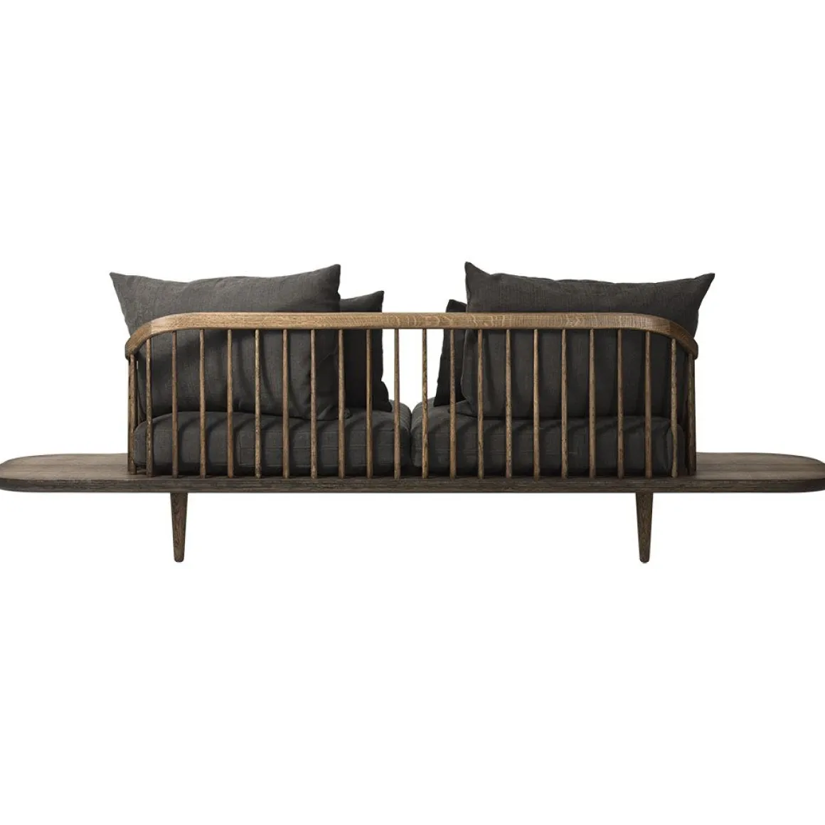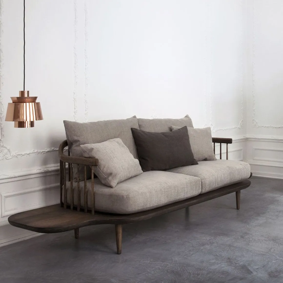 Le canapé Fly a été créé par le duo Danois Space. Contrairement à beaucoup de fauteuils et canapés de la tradition scandinave, la série Fly n’impose pas sa position à l’utilisateur. L’assise est conçue de telle façon que l’utilisateur comme il veut les coussins en fonction de la position qu’il veut adopter. Le canapé Fly est en chêne massif disponible en finition huilé blanchi ou huilé fumé; deux finitions qui permettent de garder la beauté du bois au fil du temps. Le modèle Fly SC3 possède des tables de chevet de chaque côté ce qui forme un cadre original. Un canapé élégant, confortable et pratique qui apporte également une touche design à votre intérieur.