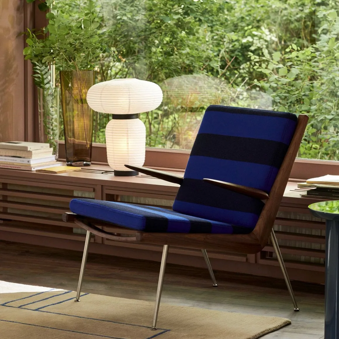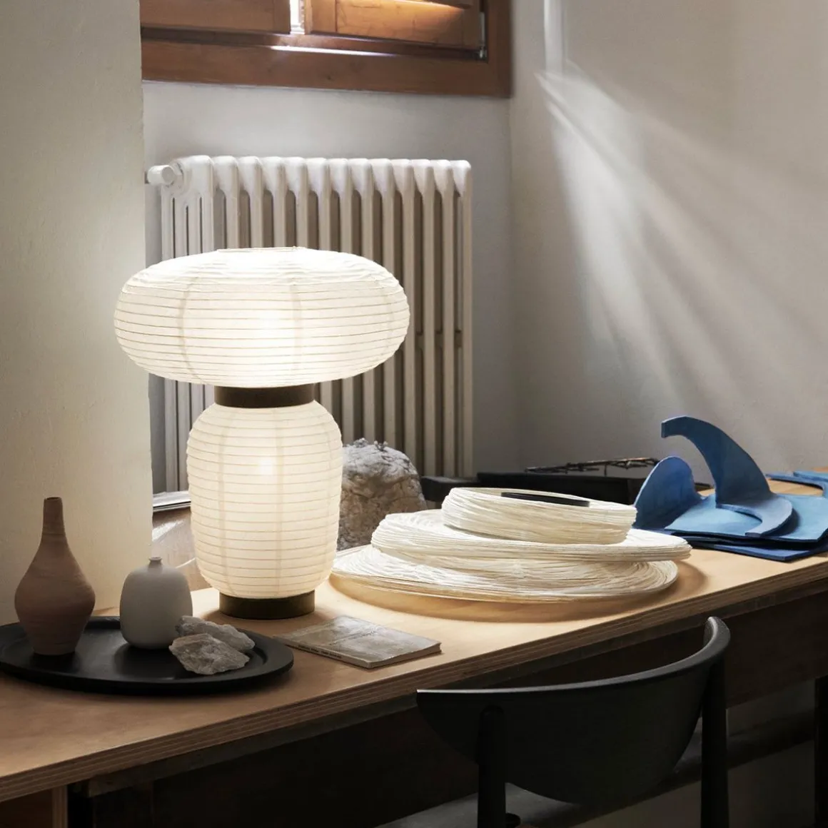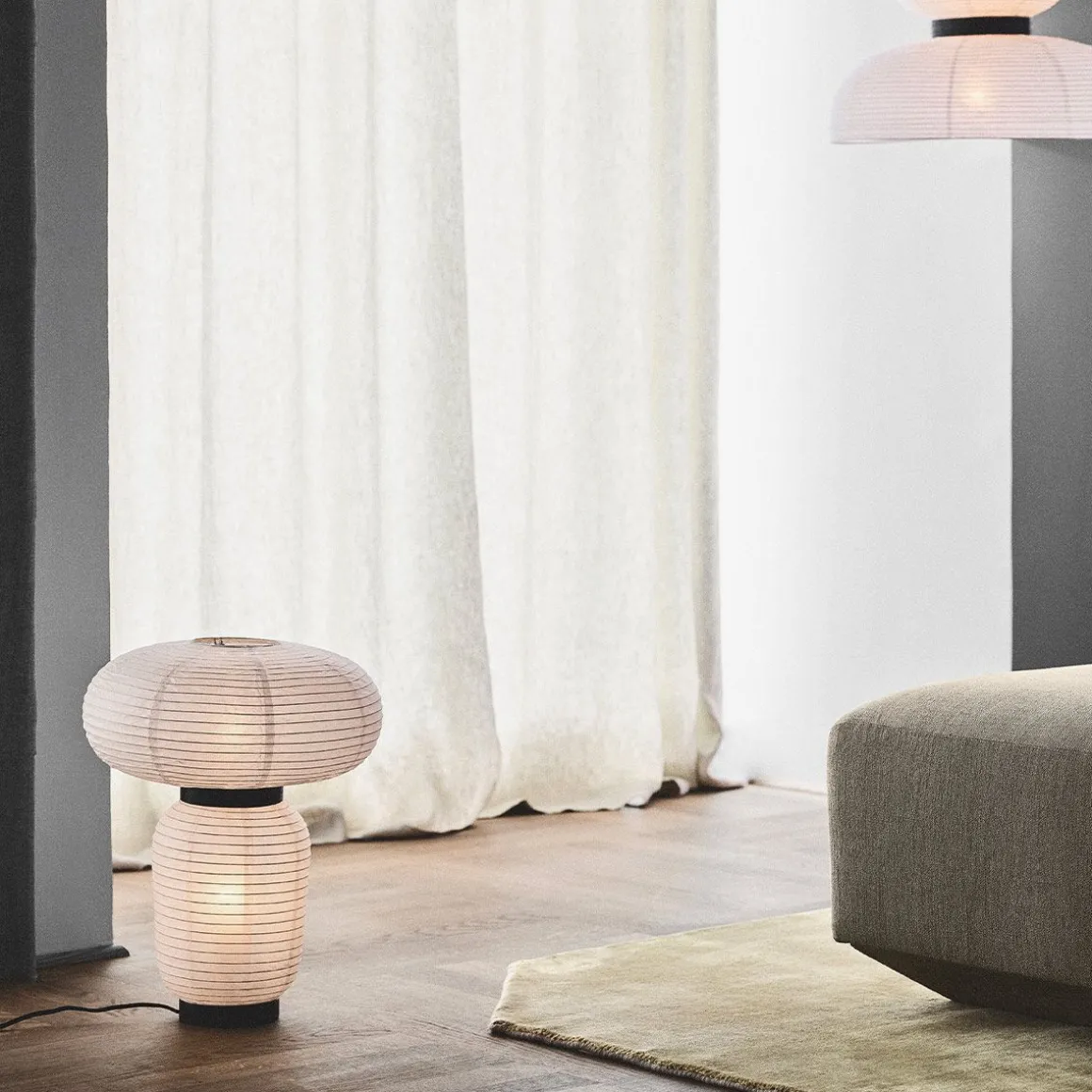 Formakami JH18 de &Tradition par Jaime Hayon. L’Orient rencontre l’Occident dans la version ludique de Jaime Hayon d’une lanterne asiatique traditionnelle dans une expression contemporaine. Depuis des siècles, les lanternes en papier sont présentes en Asie parmi les privilégiés et les pauvres, où différentes couleurs, formes et tailles ont des significations différentes. Ici, Hayon s’est dispensé des formalités culturelles pour créer une série de lampes toutes en blanc. Fabriqué à la main avec du papier de riz fusionnant différentes tailles et formes. La série comprend trois versions de lanternes différentes et une lampe de table en papier blanc ivoire avec des accents de chêne teinté noir.