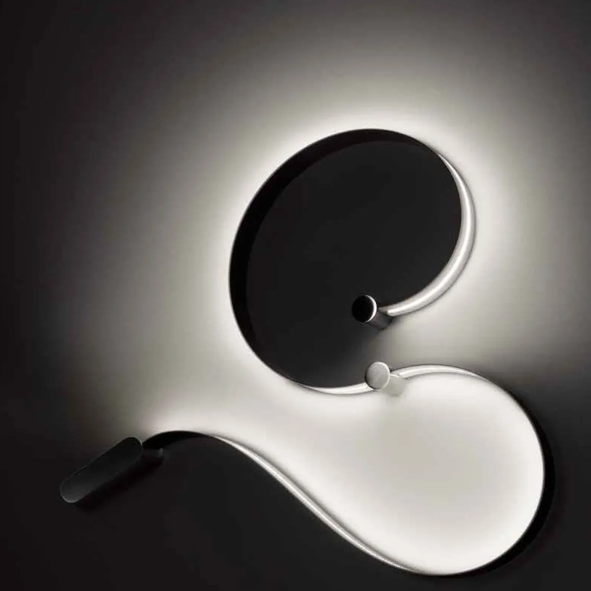 FormaLa, rubans de lumière en acier harmonique, peut être installée dans d’innombrables configurations : lignes courbes, symétriques, asymétriques, ouvertes et fermées. Lampes LED, dimmables, d’intérieur, pour un éclairage direct et indirect. Disponible en deux différentes longueurs avec alimentateur intégré et en quatre longueurs avec alimentateur lointain. La famille des lampes FormaLa est protégée par un Brevet d’invention.