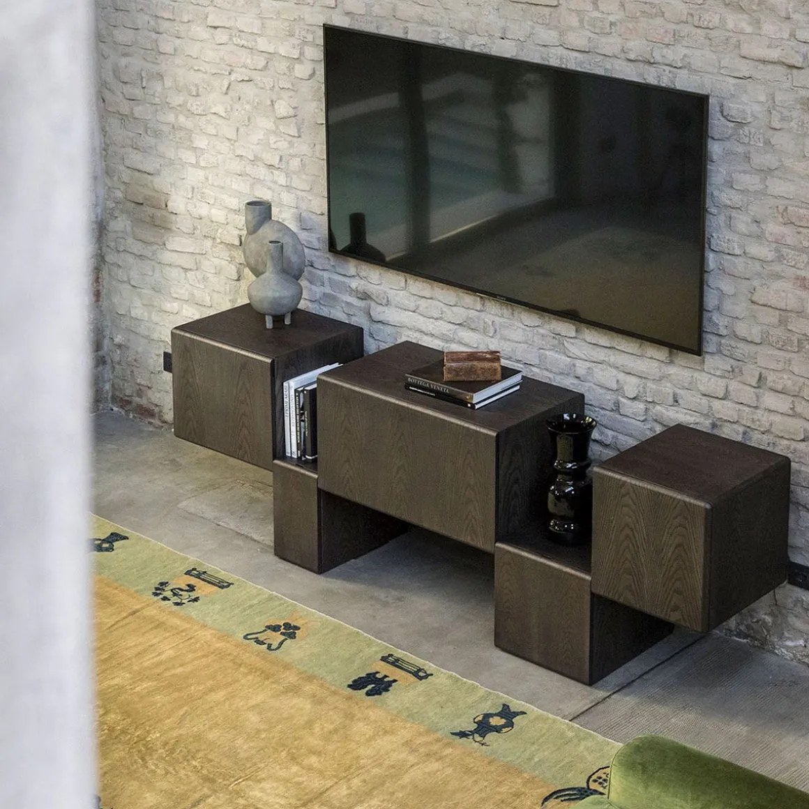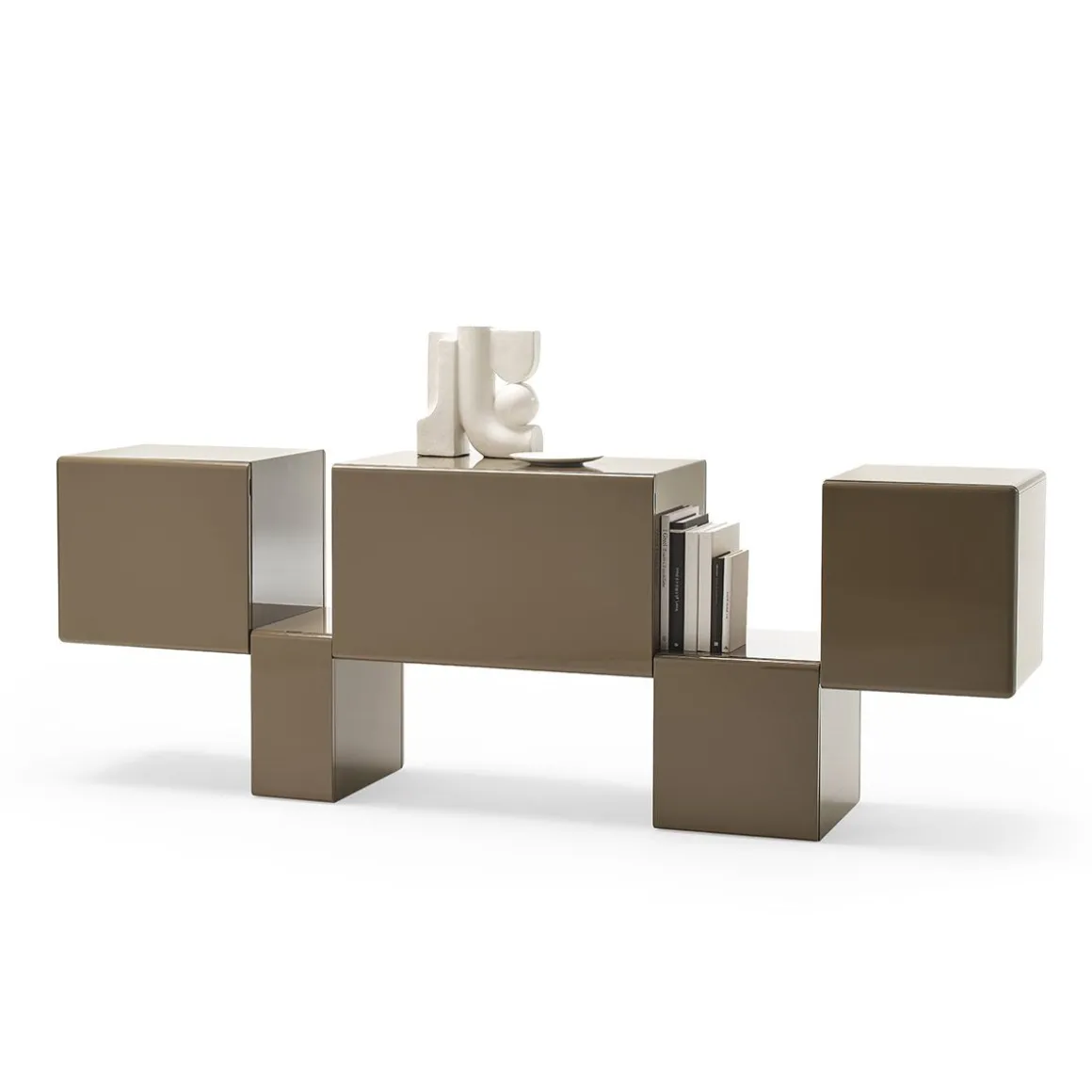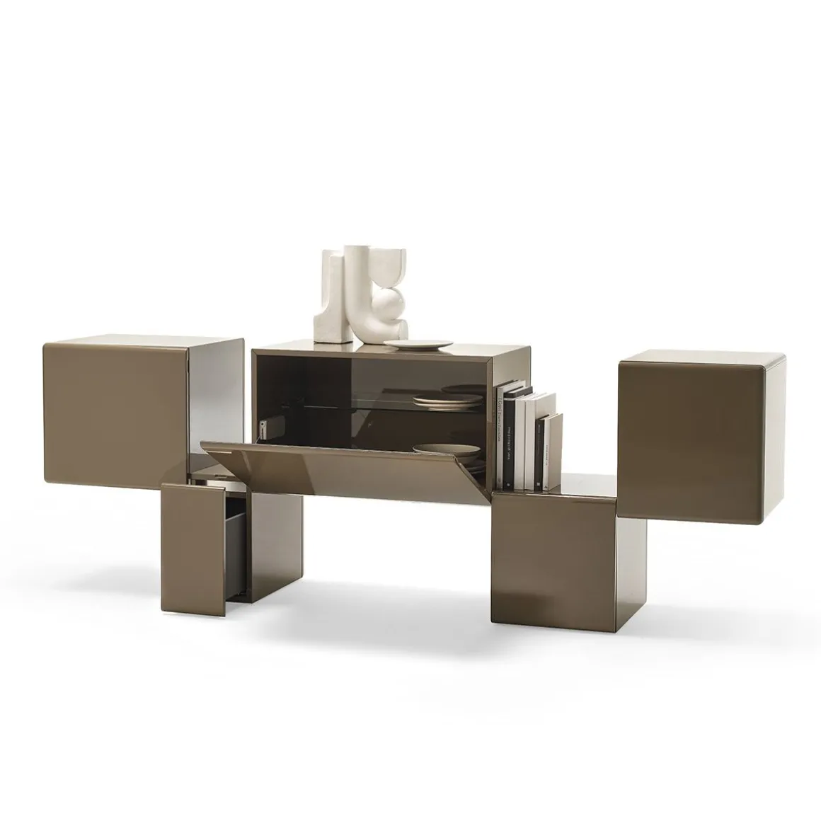 Fractal est un buffet et meuble TV avec structure en mdf laqué mat ou brillant dans toutes les couleurs selon les échantillons ou en frêne teinté moka. Conteneur composé de modules où les espaces pleins et vides d’un côté nous permettent d’organiser et de stocker ce que nous ne voulons pas exposer, de l’autre il nous permet de créer des compositions personnelles composées de livres, d’objets, de vases, de photographies, de petits tableaux.