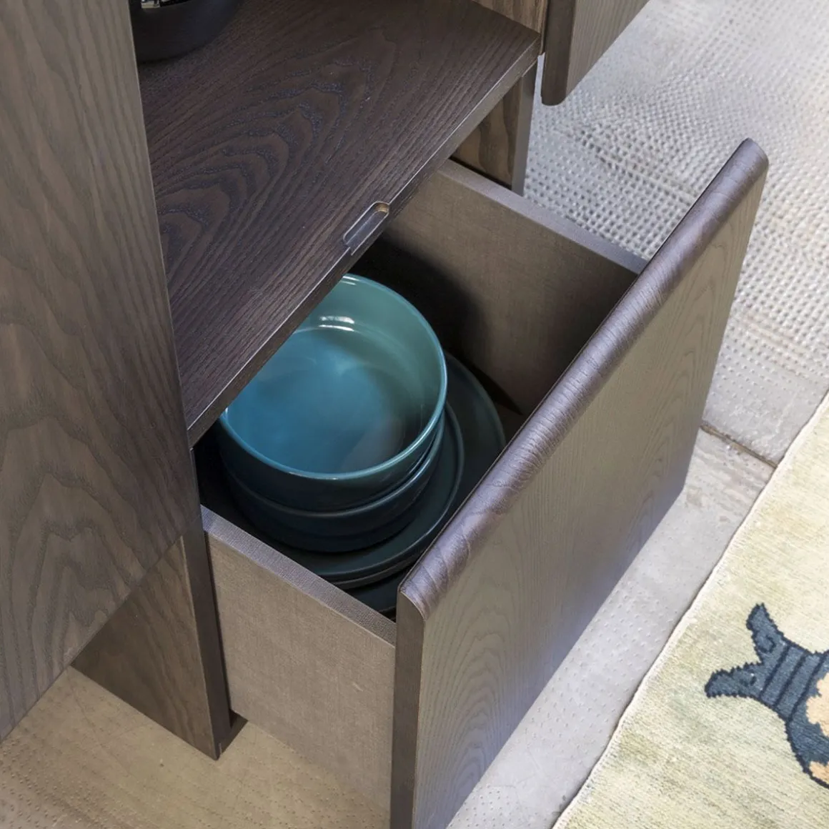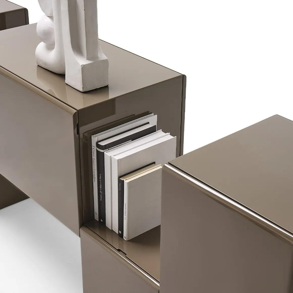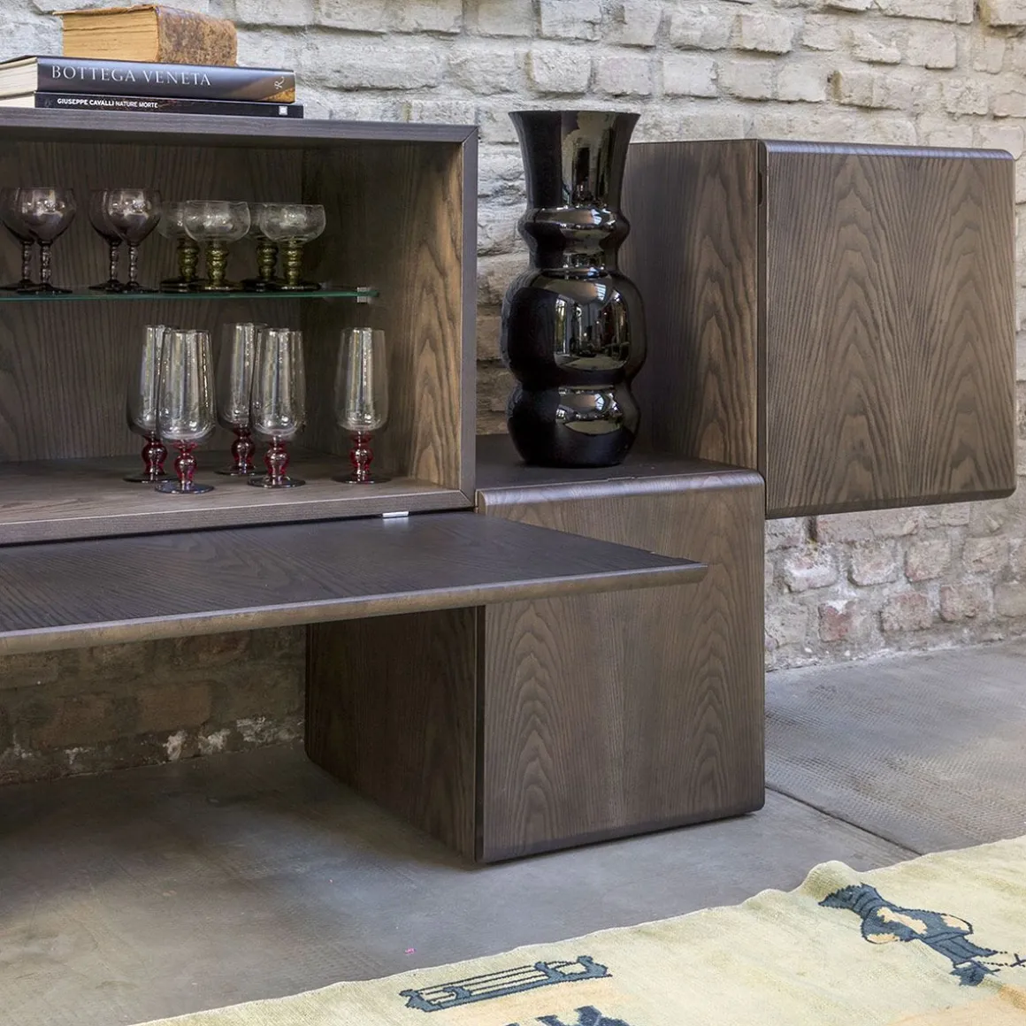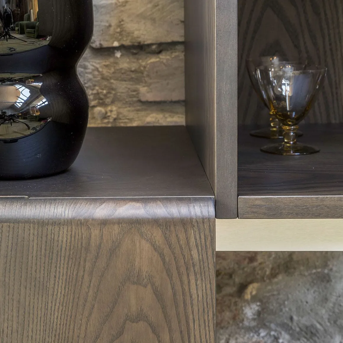 Fractal est un buffet et meuble TV avec structure en mdf laqué mat ou brillant dans toutes les couleurs selon les échantillons ou en frêne teinté moka. Conteneur composé de modules où les espaces pleins et vides d’un côté nous permettent d’organiser et de stocker ce que nous ne voulons pas exposer, de l’autre il nous permet de créer des compositions personnelles composées de livres, d’objets, de vases, de photographies, de petits tableaux.