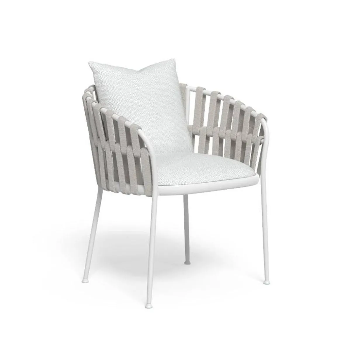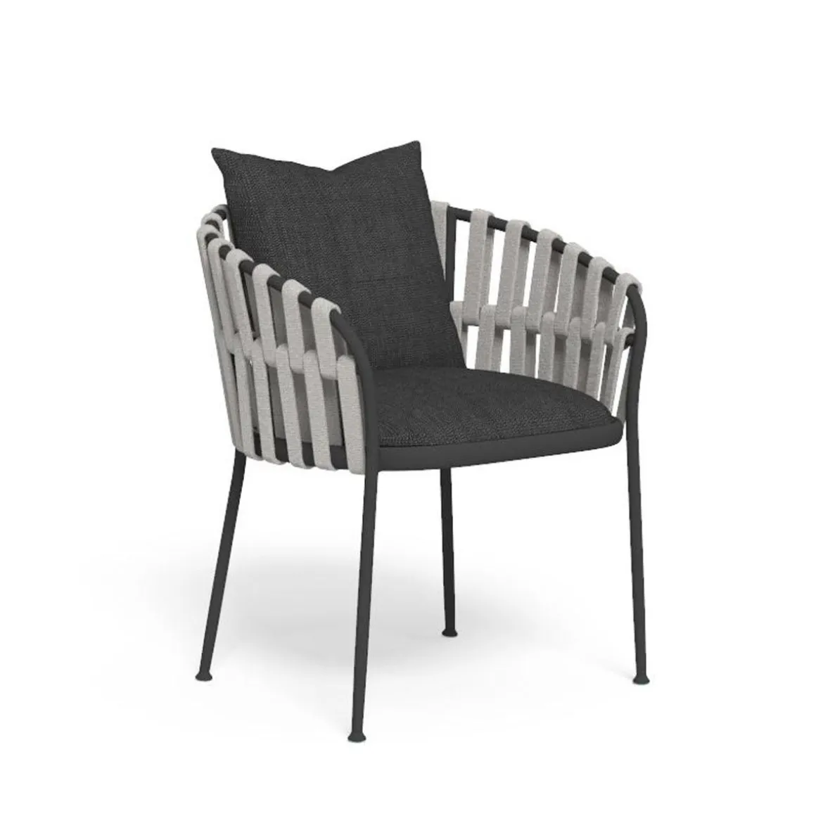 Le fauteuil repas Frame est le mariage de tous les éléments de la collection synthétisés dans un seul siège. La structure fine et délicate en aluminium s’unit aux volumes moelleux de la coussinerie du dossier et du tressage de cordes rembourrées. Sensuel et élégant, le fauteuil de repas est l’élément parfait pour donner un plus au living d’extérieur.