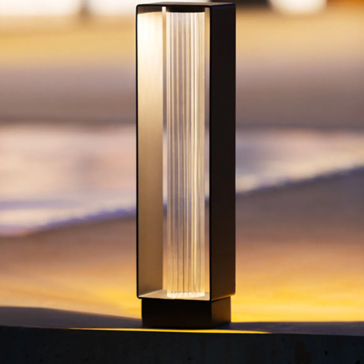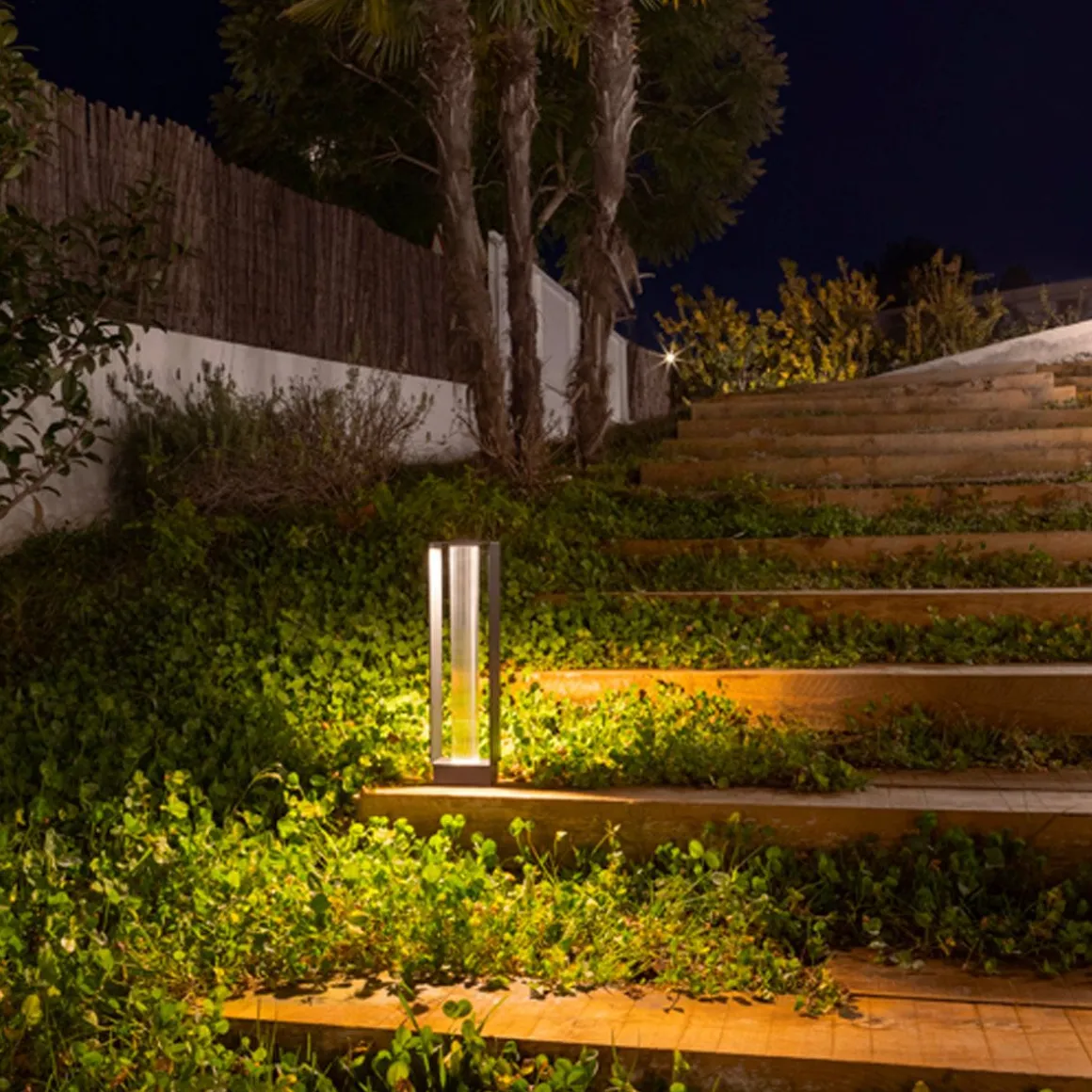 Borne lumineuse d’extérieur métallique avec pyrex transparent et diffuseur en verre. LED intégrée fournissant une lumière directe et indirecte. Revêtement double couche pour une haute résistance à la corrosion et d’autres conditions environnementales. Câblé (pas de prise)