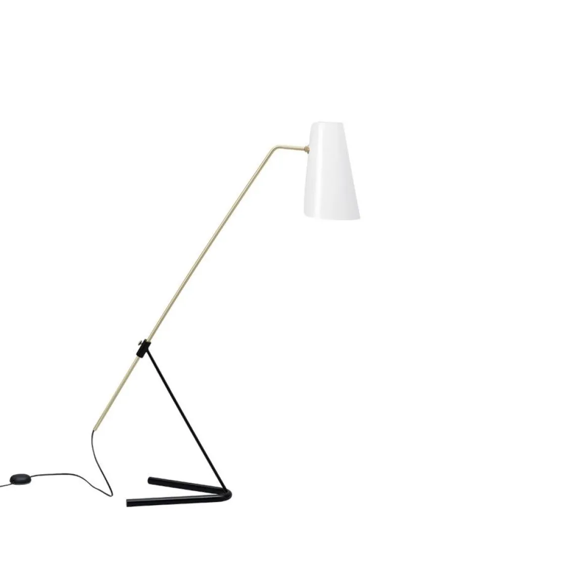 Matériaux : année 1951, pour utilisation intérieure, pied acier noir, laiton verni brossé, abat-jour aluminum blanc