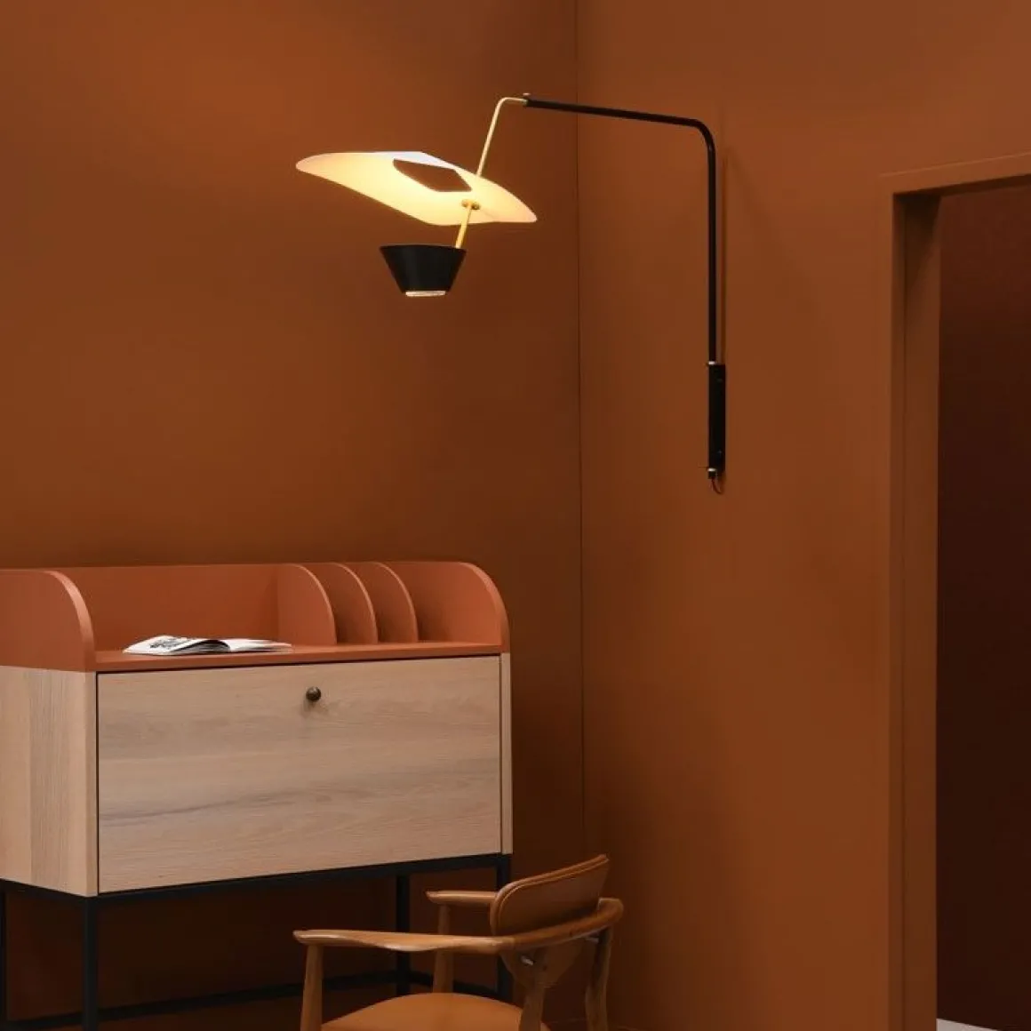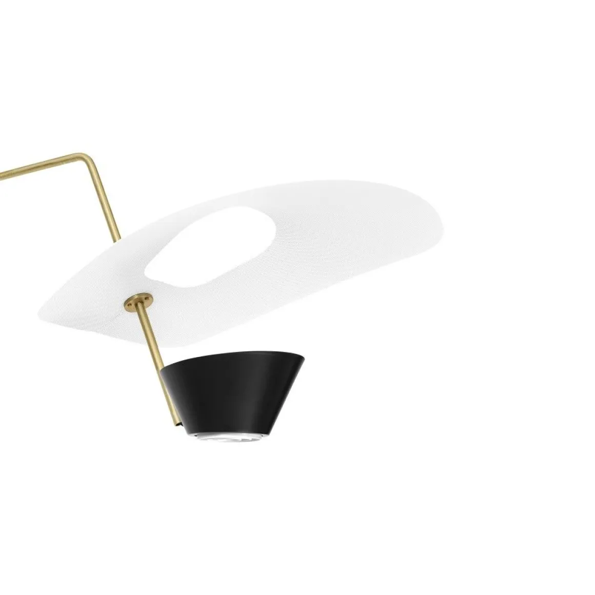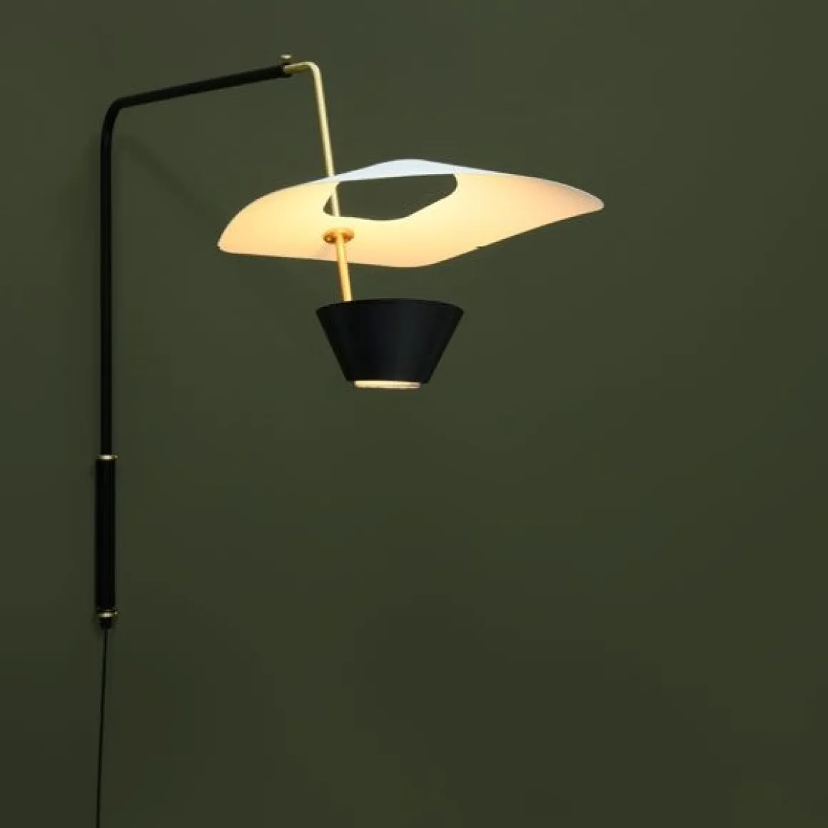 L’applique G25 ne passera pas inaperçue dans votre intérieur. Elle peut s’utiliser au-dessus d’une table à manger, comme du vivant de son créateur, mais aussi dans un bureau ou une entrée grâce à ses volumes qui s’inscrivent aisément dans l’espace. Coiffée d’un déflecteur de métal, cette applique prestigieuse vous offrira un éclairage diffus à l’ambiance agréable. Sa tige en laiton vernis brossé est réglable en longueur.