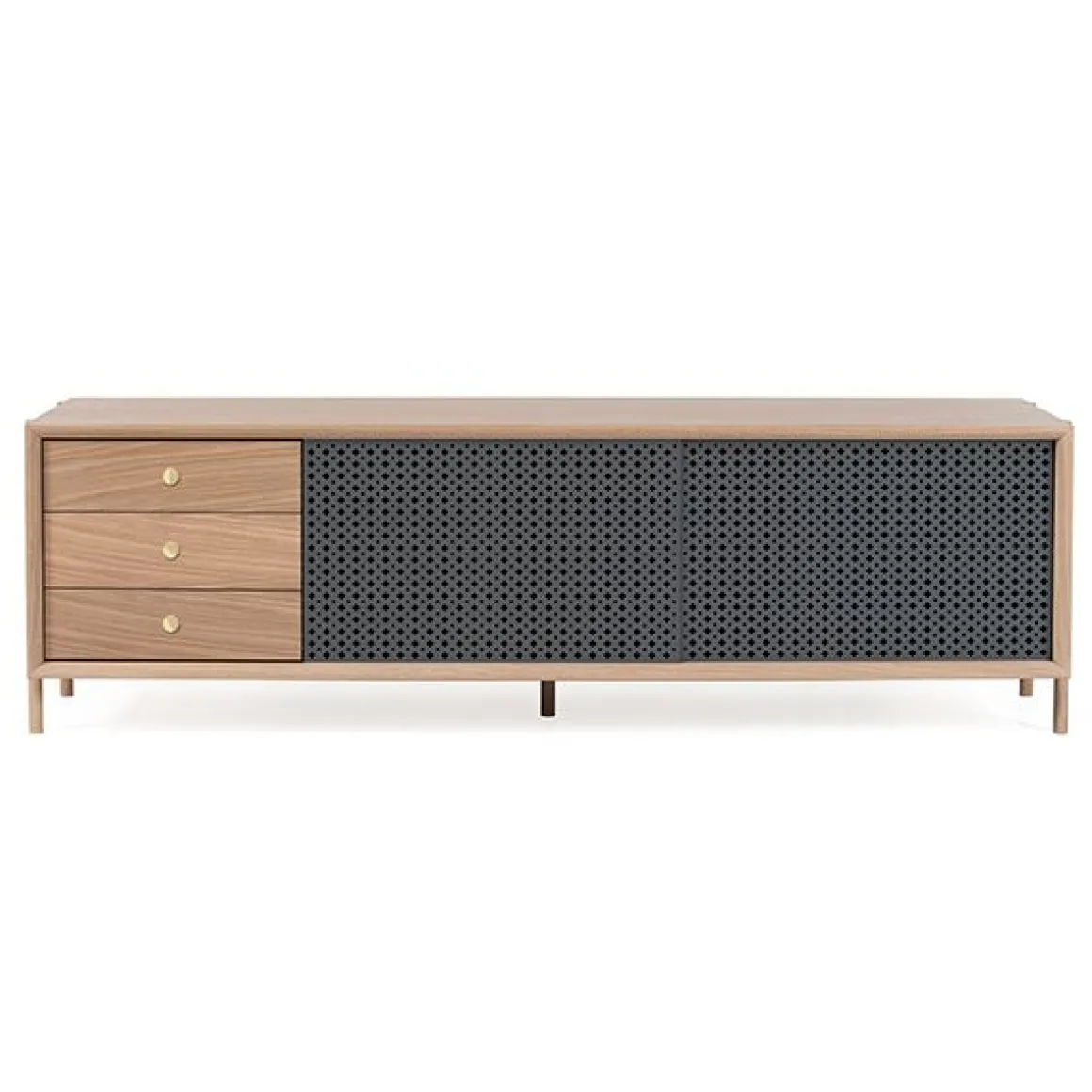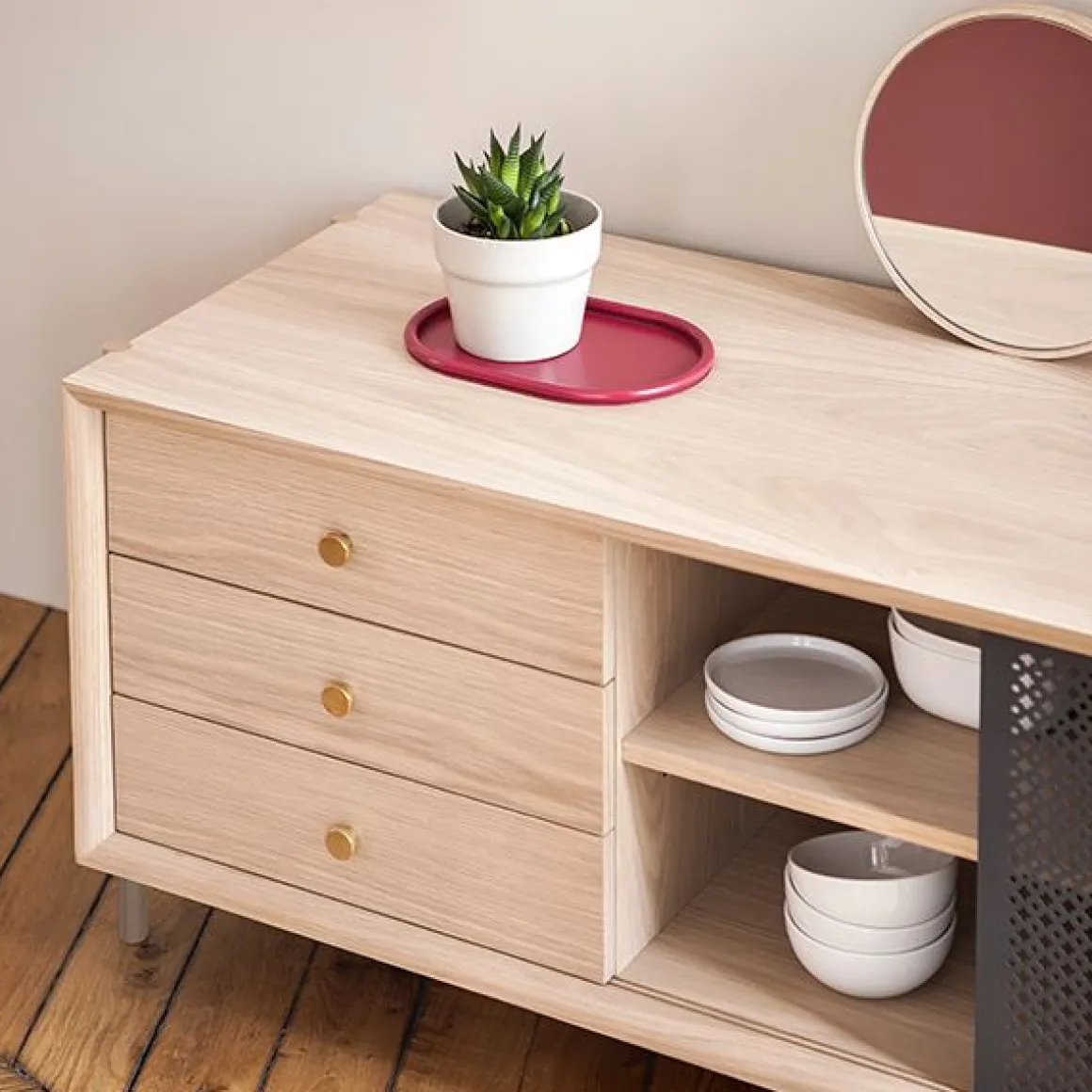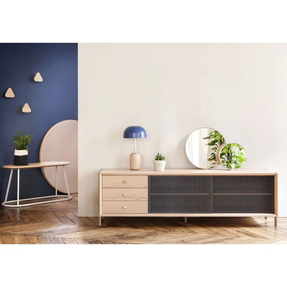 Gabin est une pièce unique par son style et son originalité tout en gardant une simplicité étonnante par ses lignes minimalistes mais ses finitions innatendues. Rappelant les assises anciennes de nos ainés, le cannage est une technique de tissage sur châssis à l’aide de canne de rotin. Gabin est, après Marius, le deuxième buffet bas de la collection HARTÔ. Il se démarque principalement par le motif inspiré du cannage, ainsi que par l’association bois et métal. Portes disponibles en quatre coloris : gris clair, rose pomelo, bleu gris et gris ardoise.