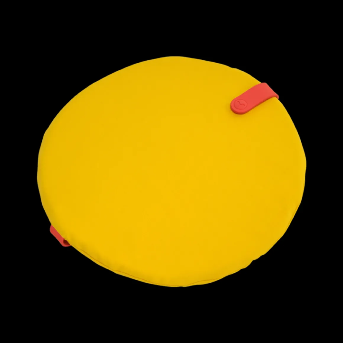 Galette de chaise ronde Color Mix de Fermob. Pour encore plus de confort, cette galette de chaise (au format standard) convient à toutes les chaises rondes Fermob… mais pas que. De standard, elle n’a que la taille. Des coloris exclusifs flamboyants développés par Fermob, des formes douces : l’essence même de Fermob. Jouez avec toutes les couleurs des galettes et des chaises Fermob, soyez audacieux et créez un ensemble qui vous ressemble… La galette Color Mix a été conçue pour vivre dehors : un tissu qui résiste au soleil et aux intempéries, une sangle PVC qui verra passer les années. N’hésitez plus, faites-vous plaisir ! Les galettes Color Mix existent en plusieurs tailles et la gamme se décline aussi sur des coussins Déco.