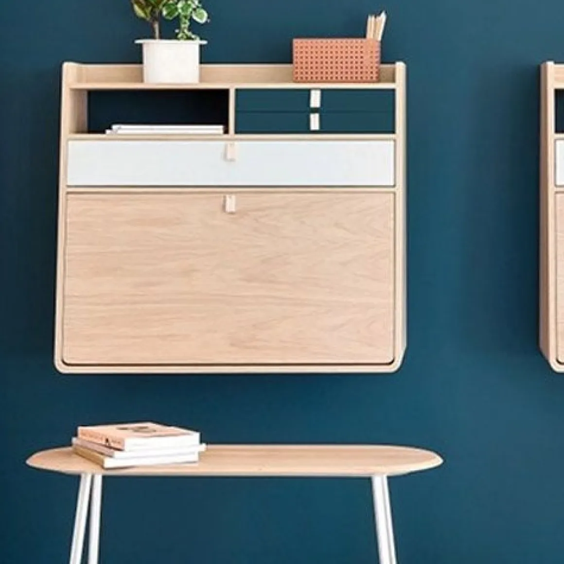 Le secrétaire mural idéal dans les plus petits espaces. Muni de ses trois tiroirs et de sa tablette rabattable, il offre rangements et une réelle surface de travail. Ludique et prétique, c’est le partenaire idéal pour les moments aussi bien professionnels que de loisirs ! Créatif et inspirant, il réinventera votre espace d’une façon ingénieuse, et cerise sur la gateau, il se décline en plusieurs couleurs douces et chaleureuses ! On ne se fait pas de soucis pour trouver votre couleur idéale !