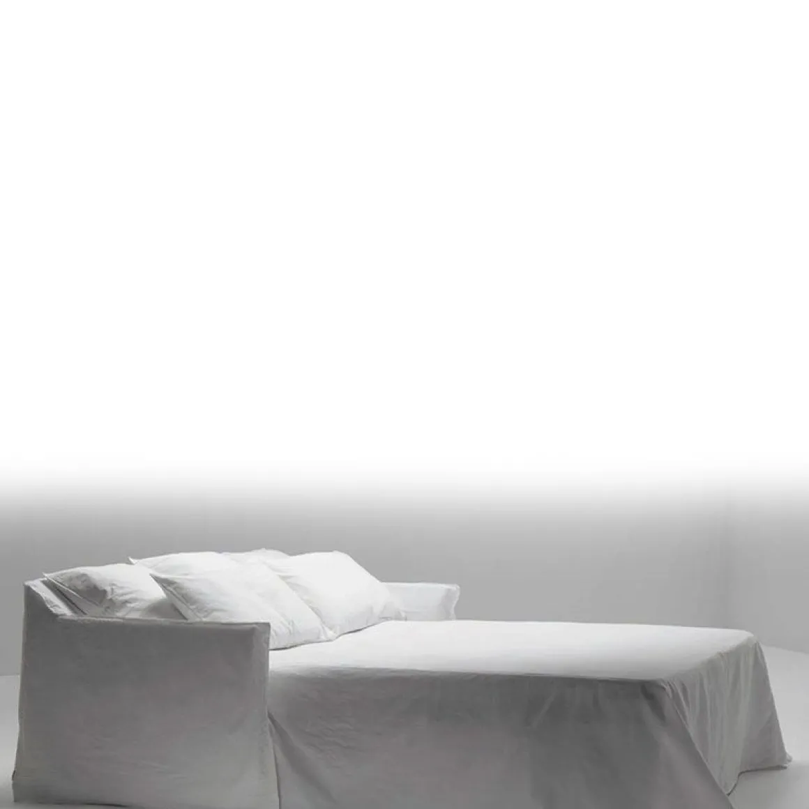 Ghost 15 de Gervasoni par Paola Navone. Canapé-lit structure en multiplis et bois massif, avec sangles élastiques. Rembourrage en mousse polyuréthane, déhoussable.
