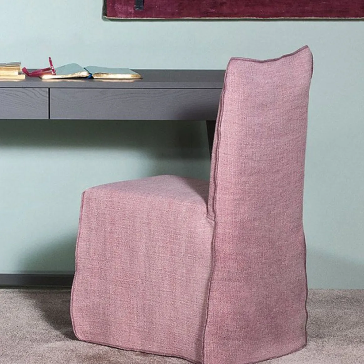Ghost 23 de Gervasoni par Paola Navone. Chaise, structure en multiplis et bois massif. Rembourrage en mousse polyuréthane, déhoussable.