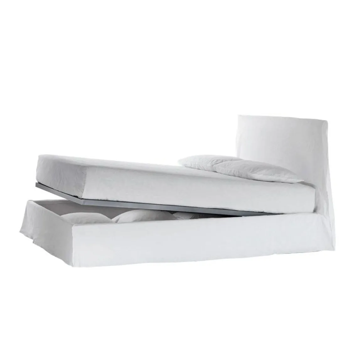 Ghost 80 de Gervasoni par Paola Navone. Lit, structure en multiplis et bois massif, démontable. Rembourrage en mousse polyuréthane, déhoussable.