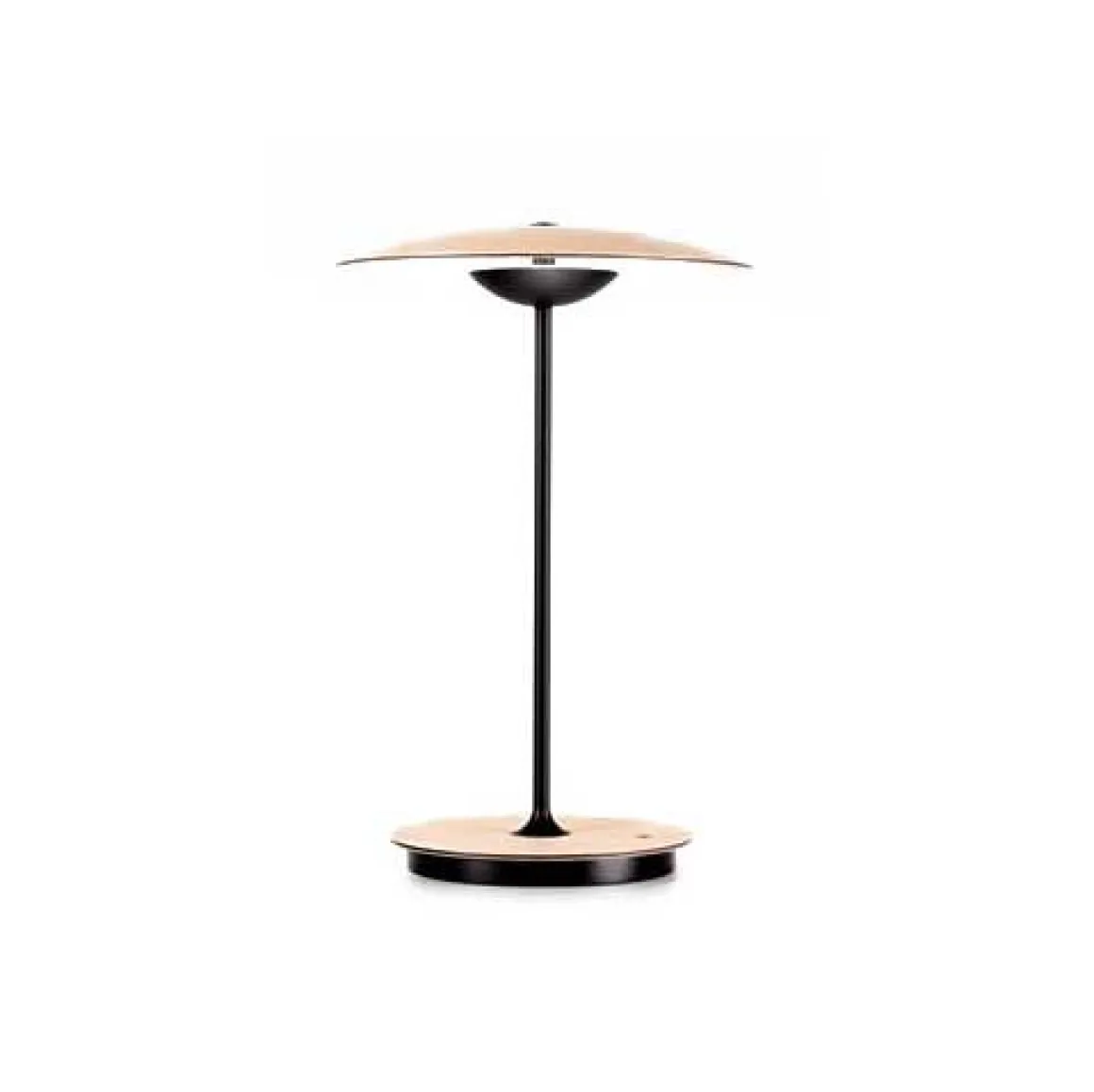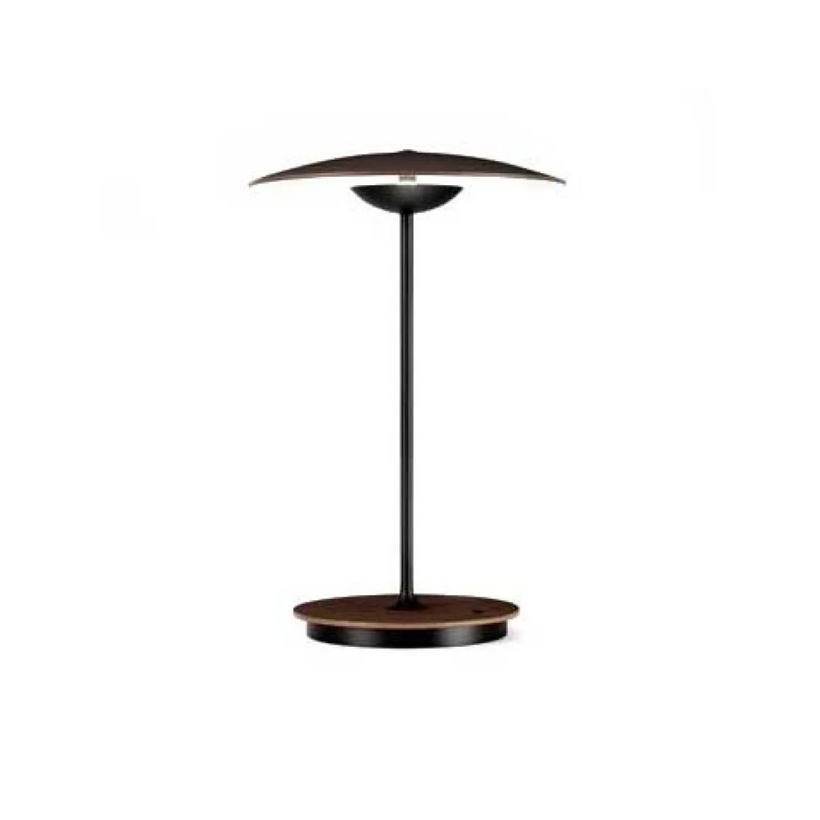 Matériaux : Diffuseur en bois pressé de 4 mm en chêne naturel ou wengé ou laiton; Réflecteur en aluminium injecté et tige métallique laqués noir mat; L’intérieur de la base cache