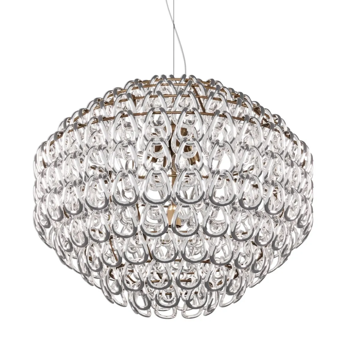Un élément pur : le crochet en cristal. C’est l’intuition d’un maître du design italien, Angelo Mangiarotti, qui créa en 1967 le best-seller du catalogue Vistosi, Giogali. Un entrelacs iconique appliqué à la version que l’on préfère. Un système d’éclairage décoratif basé sur un seul élément, le lien en verre fait main. Il est disponible en différentes couleurs, comme table standard, sol, plafonnier, suspension et applique murale ou peut être agencé pour offrir des lustres et des structures de toutes dimensions.