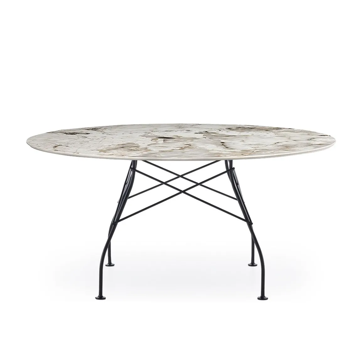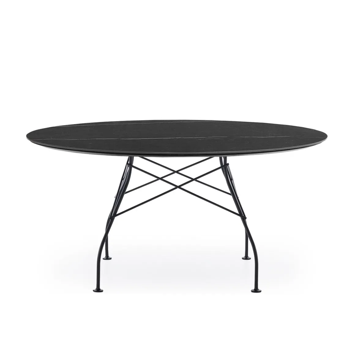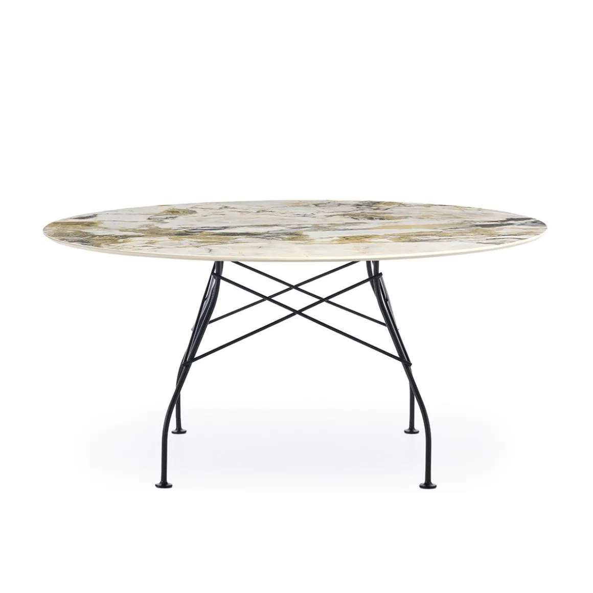 La famille de tables GLOSSY d’Antonio Citterio avec Oliver Löw est parfaitement adaptée à la maison et au bureau. Dotées d’une structure légère en acier, ces tables révèlent un design original en forme de croix qui relie les pieds sur chacun des quatre côtés, de sorte à garantir un support solide pour le plateau. Déclinée dans une variété de formes, notamment carrée, ovale et ronde, la collection est désormais disponible dans une version de 150 cm de diamètre. Il est possible de choisir la solution qui convient le mieux à vos besoins en matière d’espace et de style. Avec leur design élégant, les tables polyvalentes GLOSSY s’intègrent harmonieusement dans n’importe quel environnement et leur confèrent une note chic et fonctionnelle. Disponibles dans différentes versions : structure en acier chromé, doré ou peint et plateaux en grès finition marbre blanc, noir marquina, nature toundra et symphonie; structure en acier peint et plateaux en grès blanc, noir et bordeaux. Les tables sont destinées à un usage en intérieur et en extérieur.