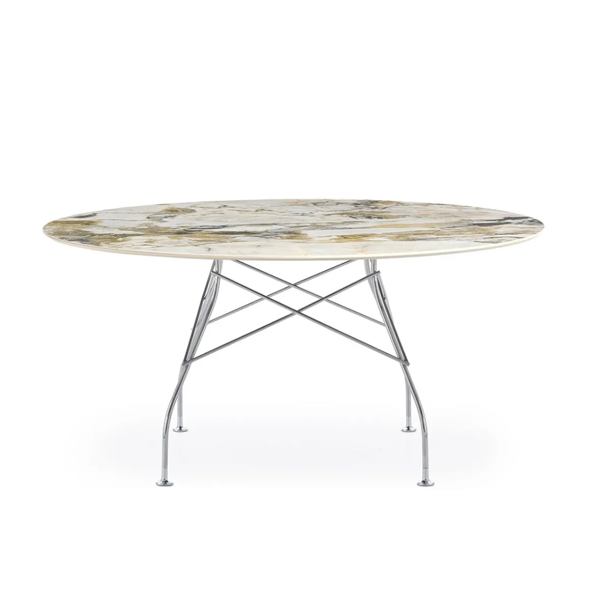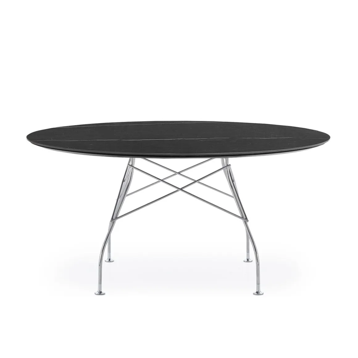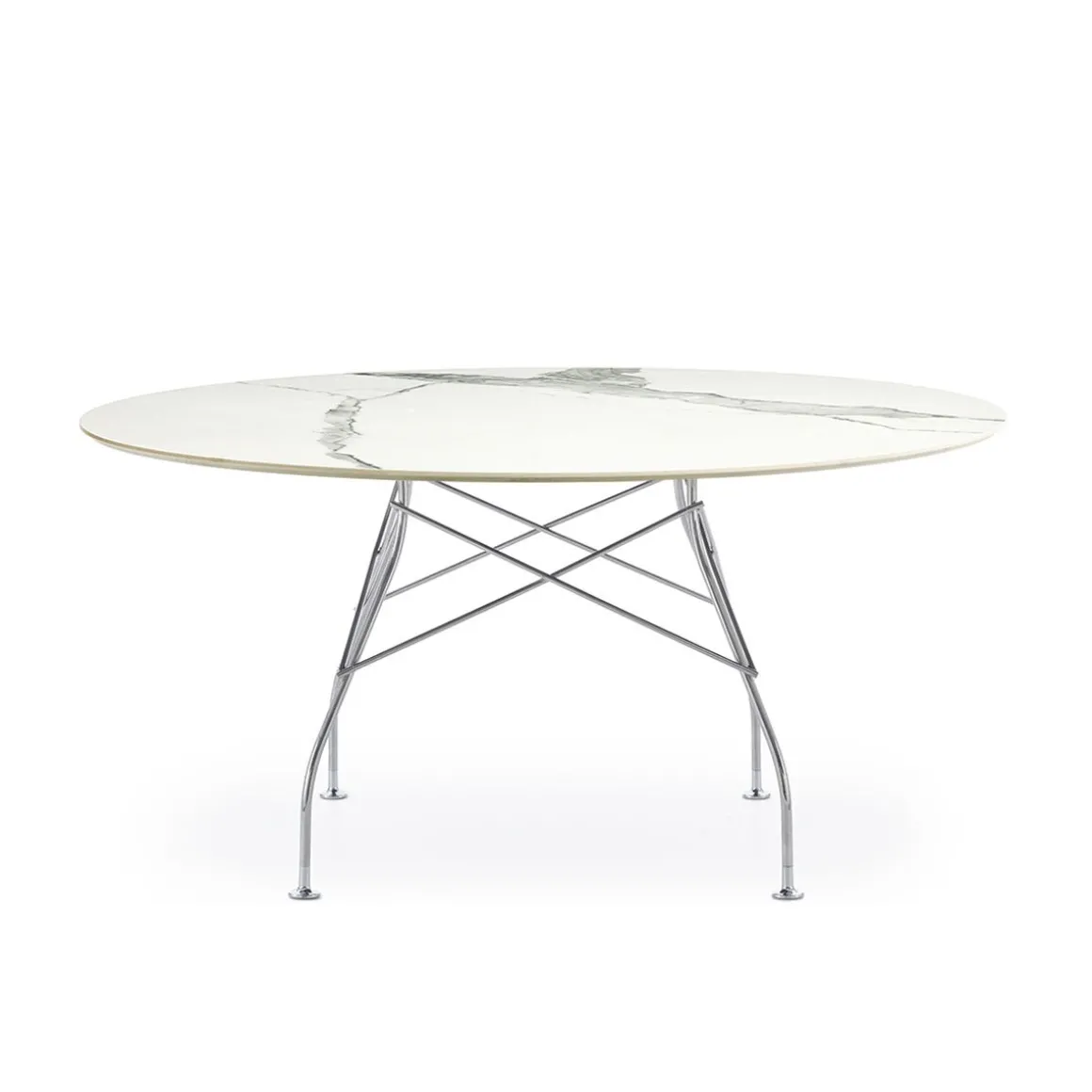 La famille de tables GLOSSY d’Antonio Citterio avec Oliver Löw est parfaitement adaptée à la maison et au bureau. Dotées d’une structure légère en acier, ces tables révèlent un design original en forme de croix qui relie les pieds sur chacun des quatre côtés, de sorte à garantir un support solide pour le plateau. Déclinée dans une variété de formes, notamment carrée, ovale et ronde, la collection est désormais disponible dans une version de 150 cm de diamètre. Il est possible de choisir la solution qui convient le mieux à vos besoins en matière d’espace et de style. Avec leur design élégant, les tables polyvalentes GLOSSY s’intègrent harmonieusement dans n’importe quel environnement et leur confèrent une note chic et fonctionnelle. Disponibles dans différentes versions : structure en acier chromé, doré ou peint et plateaux en grès finition marbre blanc, noir marquina, nature toundra et symphonie; structure en acier peint et plateaux en grès blanc, noir et bordeaux. Les tables sont destinées à un usage en intérieur et en extérieur.