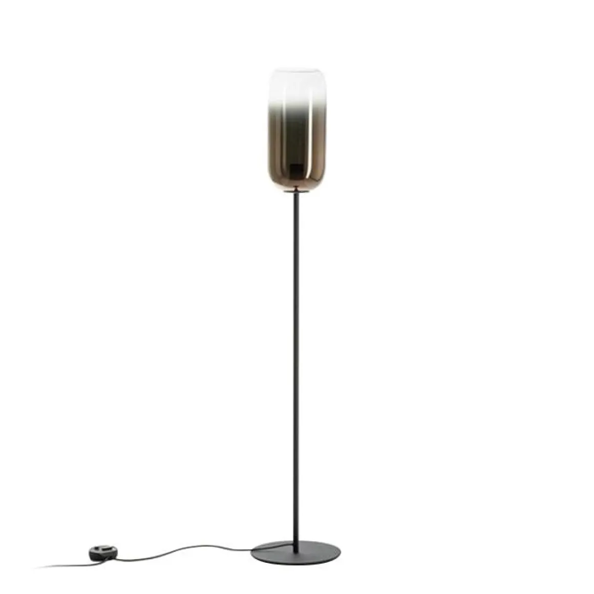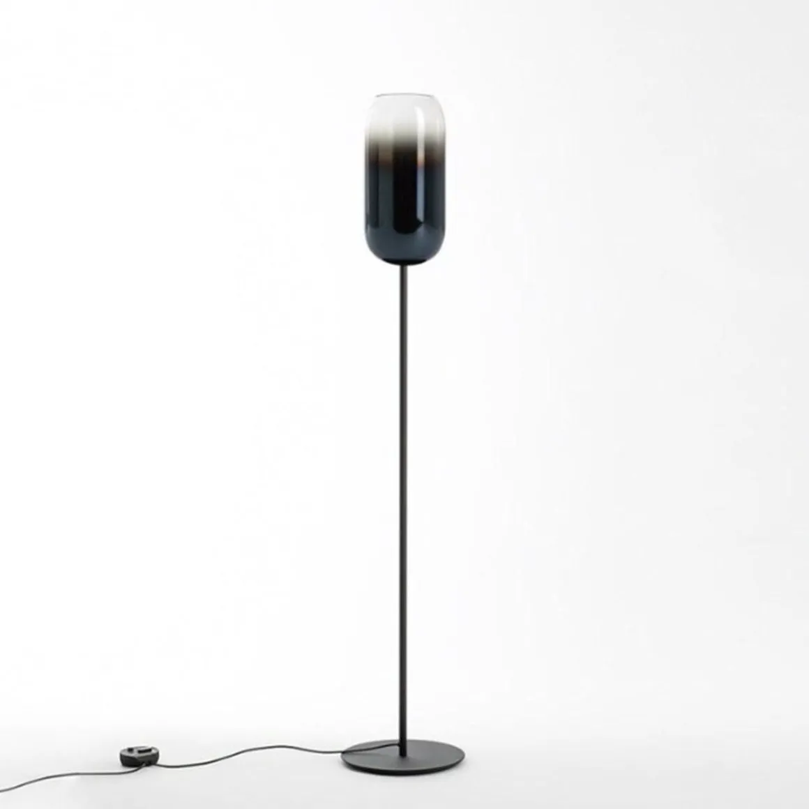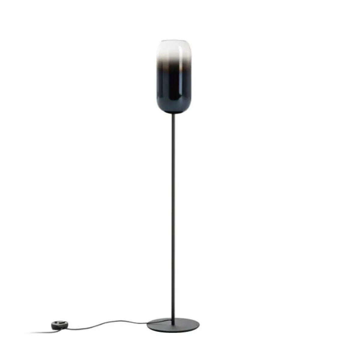 La forme de base de lampe Gople met en valeur la beauté du verre, traité à la main selon une ancienne technique vénitienne qui transformait progressivement le verre blanc en verre de cristal en combinant les deux à la soufflerie, rendant ainsi chaque pièce unique. Des finitions plus innovantes sont ajoutées, notamment la métallisation sous vide innovant et durable pour les métaux. Du point de vue de la protection de l’environnement, la « pulvérisation catholique » est la technologie de revêtement la plus propre qui soit pour le type de métal utilisé et pour réduire toutes les émission, en particulier celles dans l’atmosphère contenant de l’acide sulfurique et des cyanures produits par des procédés galvaniques. Une peinture solide contenant jusqu’à 5% de solvant (comparé à 75% de produits traditionnels) est utilisée pour la phase de couche transparente protective successive. Le processus génère très peu de déchets et la finition obtenue est particulièrement résistante dans le temps. Dans tous les cas, la finition du verre est conçue pour assurer la meilleure relation possible avec la lumière émise, filtrer la sources et maximiser l’émission directe par transparence. La version la plus basique avec le joint traditionnel E27 ou E14 est conçue pour offrir différents niveaux de performances par rapport à la version plus innovantes RWB, dans laquelle les couleurs peuvent être combinées pour créer des paysages lumineux qui répondent aux exigences d’espace. C’est une solution intemporelle pour sa flexibilité d’adaptation au développement de technologies sources standard.