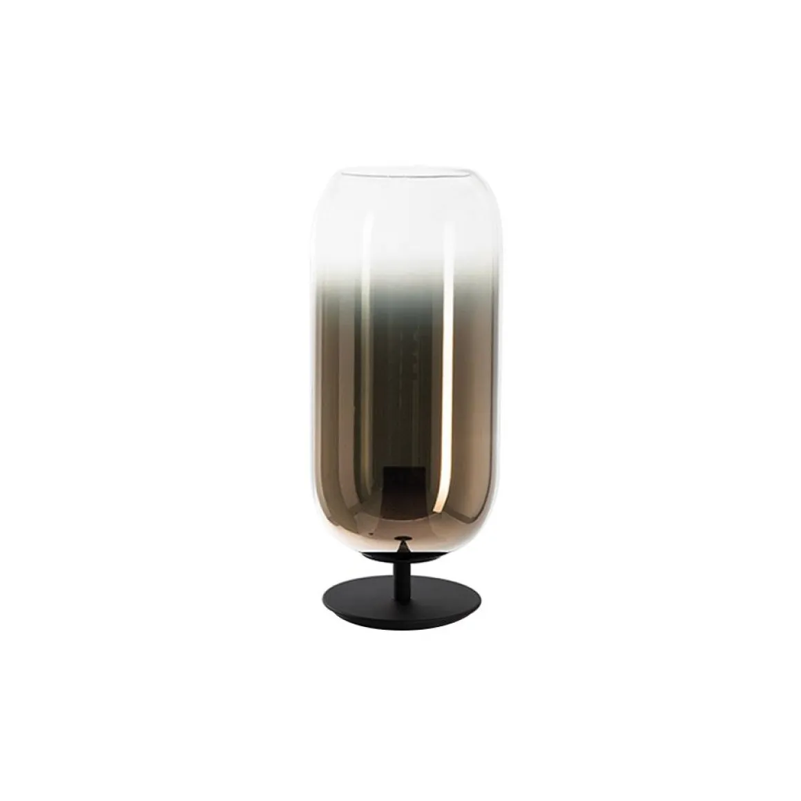 La forme de base de lampe Gople met en valeur la beauté du verre, traité à la main selon une ancienne technique vénitienne qui transformait progressivement le verre blanc en verre de cristal en combinant les deux à la soufflerie, rendant ainsi chaque pièce unique. Des finitions plus innovantes sont ajoutées, notamment la métallisation sous vide innovant et durable pour les métaux. Du point de vue de la protection de l’environnement, la « pulvérisation catholique » est la technologie de revêtement la plus propre qui soit pour le type de métal utilisé et pour réduire toutes les émission, en particulier celles dans l’atmosphère contenant de l’acide sulfurique et des cyanures produits par des procédés galvaniques. Une peinture solide contenant jusqu’à 5% de solvant (comparé à 75% de produits traditionnels) est utilisée pour la phase de couche transparente protective successive. Le processus génère très peu de déchets et la finition obtenue est particulièrement résistante dans le temps. Dans tous les cas, la finition du verre est conçue pour assurer la meilleure relation possible avec la lumière émise, filtrer la sources et maximiser l’émission directe par transparence. La version la plus basique avec le joint traditionnel E27 ou E14 est conçue pour offrir différents niveaux de performances par rapport à la version plus innovantes RWB, dans laquelle les couleurs peuvent être combinées pour créer des paysages lumineux qui répondent aux exigences d’espace. C’est une solution intemporelle pour sa flexibilité d’adaptation au développement de technologies sources standard.