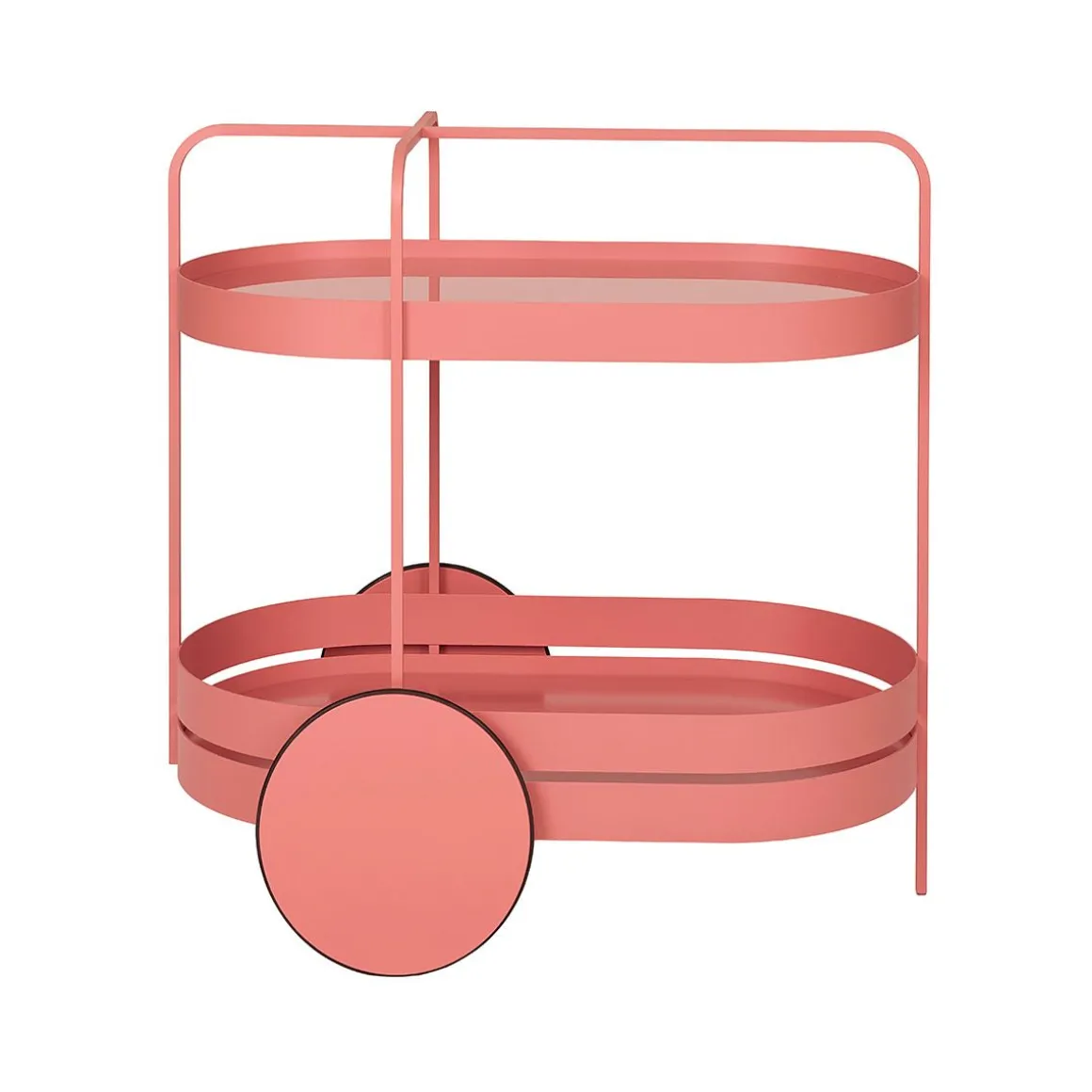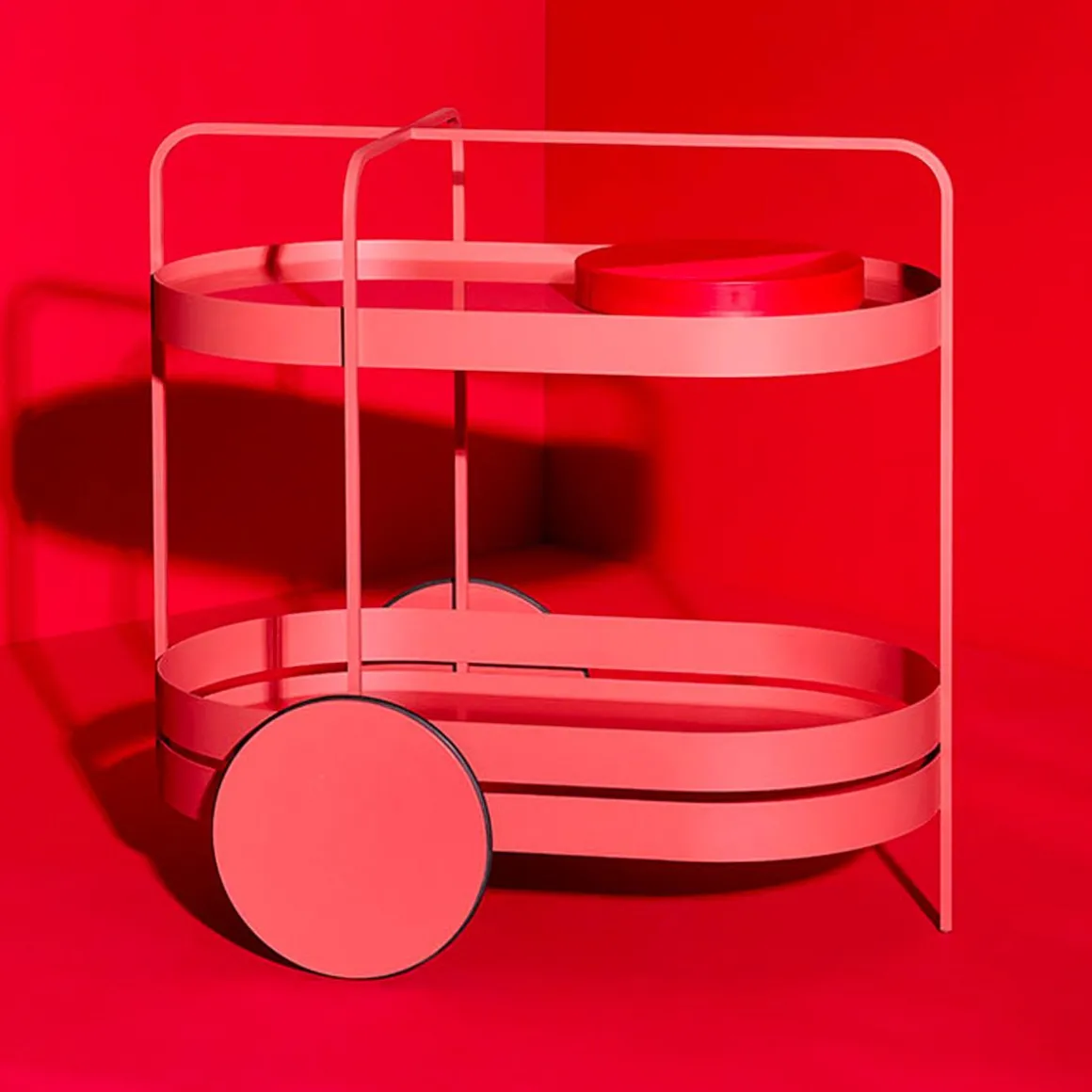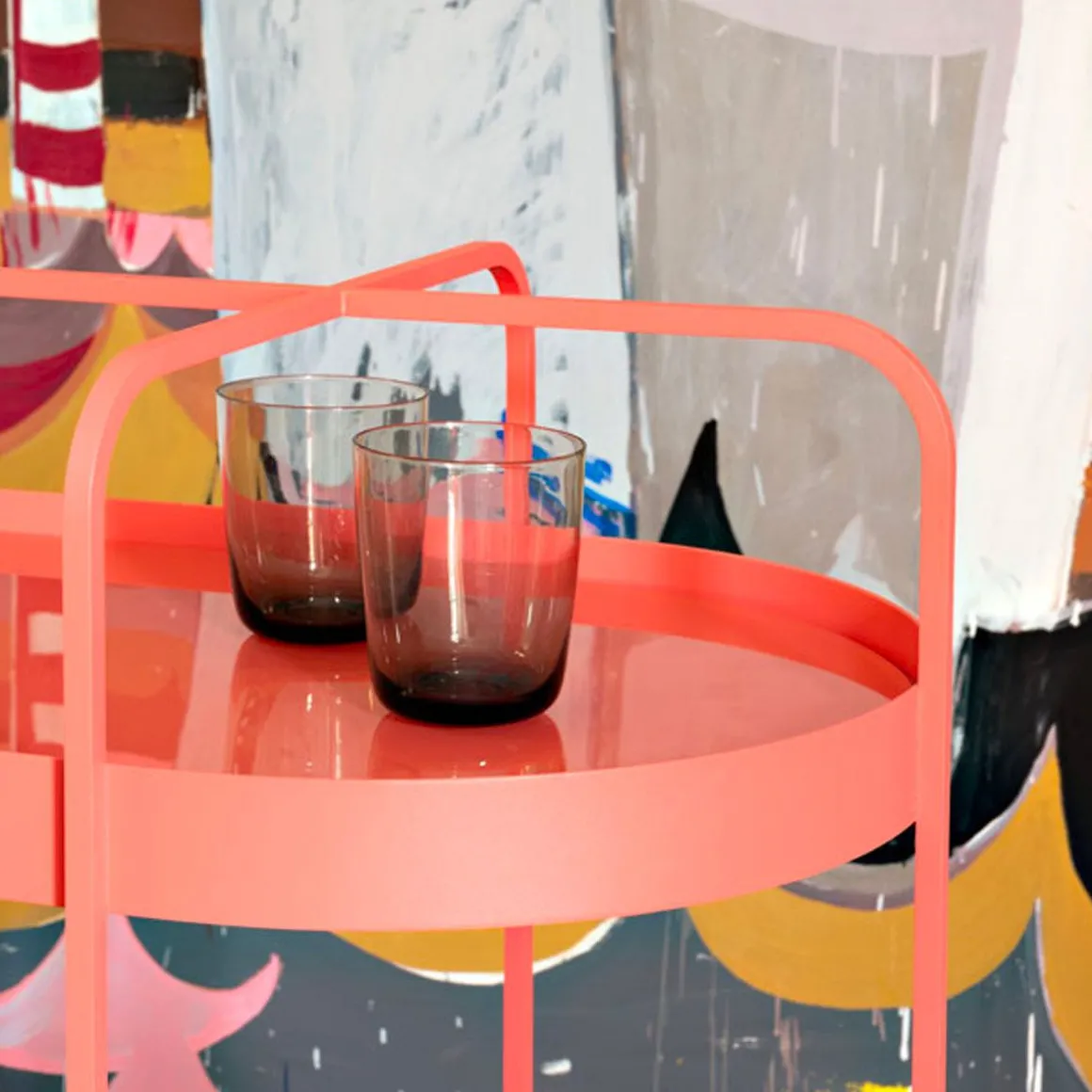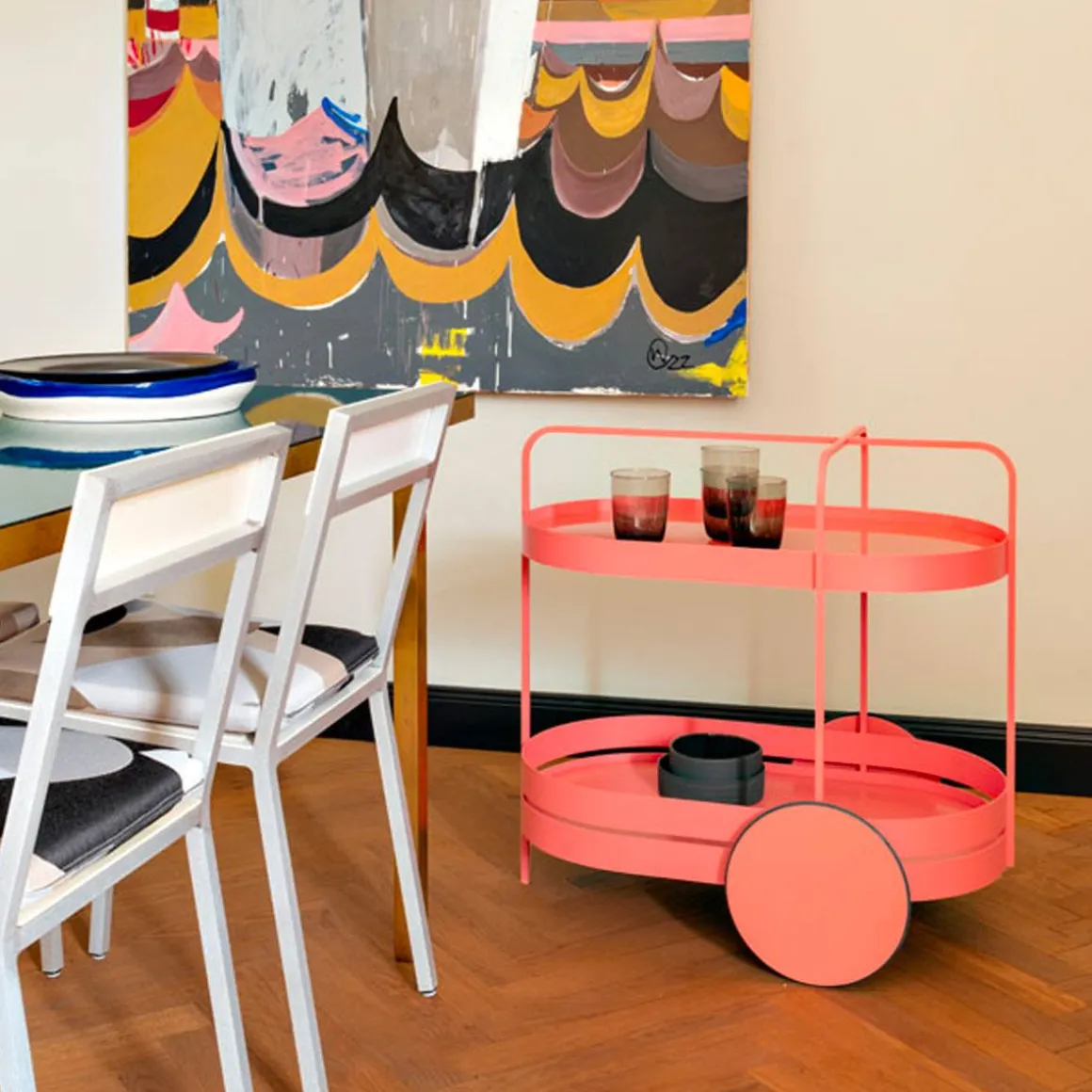Grace de Schönbuch par Sebastian Herkner. Le chariot de service GRACE est à la fois frappant et sophistiqué. Parfait comme table d’appoint, il est également très pratique comme solution de rangement mobile ou chariot de bar. Le design est basé sur un détail moderne et intemporel de l’architecture des années 1950 et constitue un élément accrocheur dans n’importe quel espace. Le cadre est en métal peint par poudrage, avec une étagère supérieure en verre peinte à l’arrière pour correspondre.