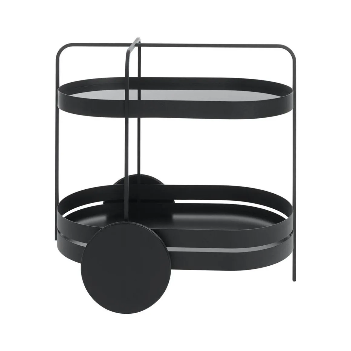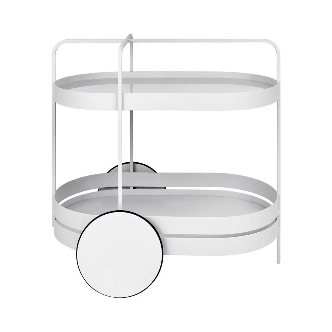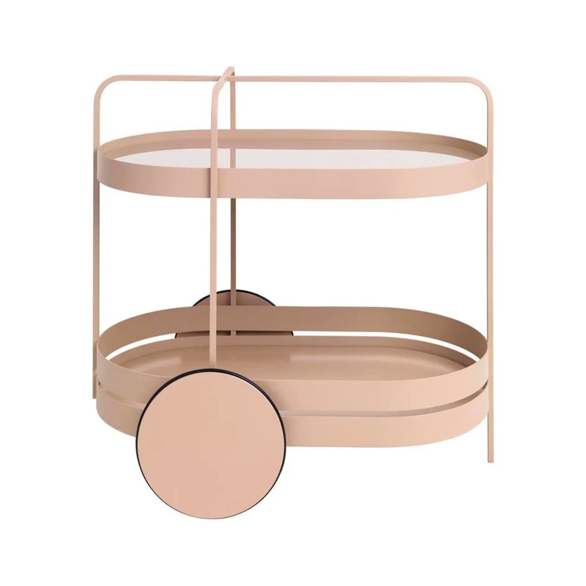 Grace de Schönbuch par Sebastian Herkner. Le chariot de service GRACE est à la fois frappant et sophistiqué. Parfait comme table d’appoint, il est également très pratique comme solution de rangement mobile ou chariot de bar. Le design est basé sur un détail moderne et intemporel de l’architecture des années 1950 et constitue un élément accrocheur dans n’importe quel espace. Le cadre est en métal peint par poudrage, avec une étagère supérieure en verre peinte à l’arrière pour correspondre.