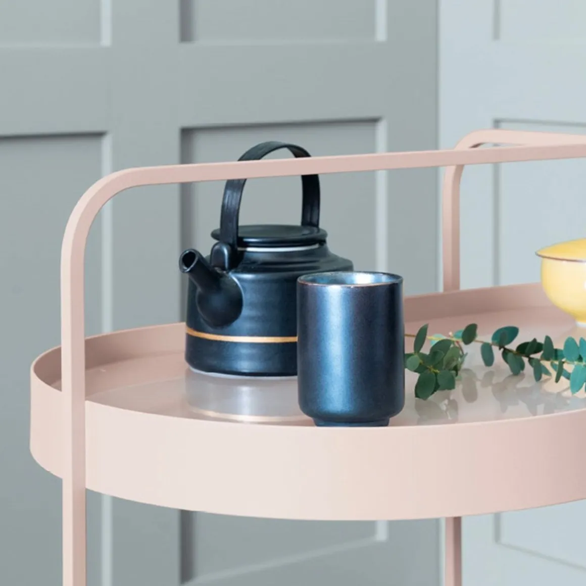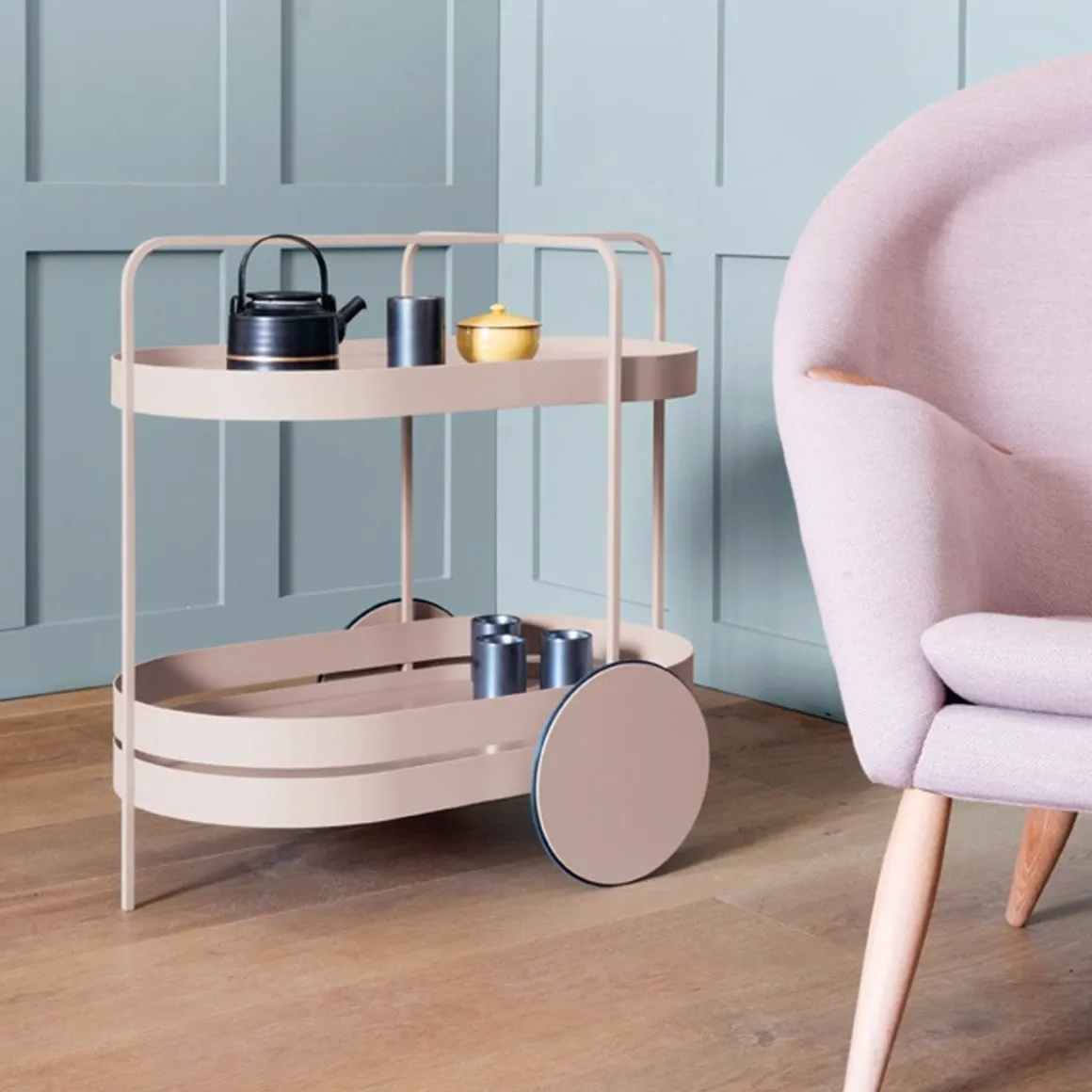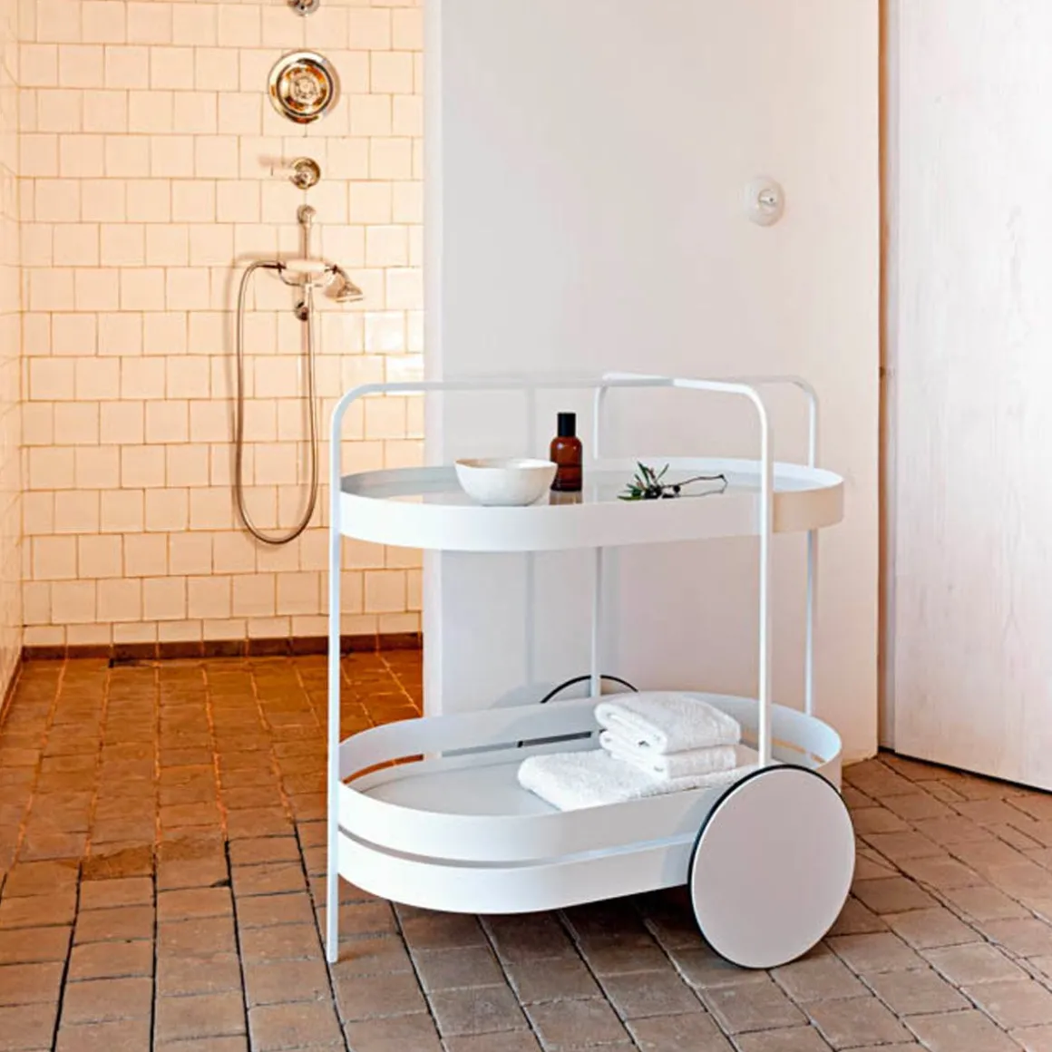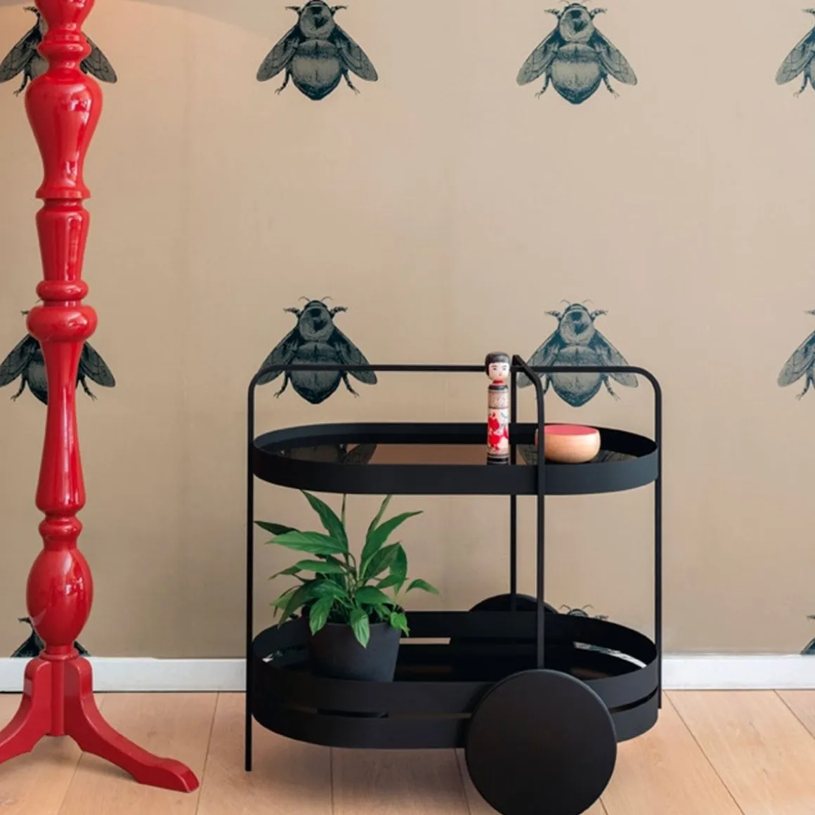 Grace de Schönbuch par Sebastian Herkner. Le chariot de service GRACE est à la fois frappant et sophistiqué. Parfait comme table d’appoint, il est également très pratique comme solution de rangement mobile ou chariot de bar. Le design est basé sur un détail moderne et intemporel de l’architecture des années 1950 et constitue un élément accrocheur dans n’importe quel espace. Le cadre est en métal peint par poudrage, avec une étagère supérieure en verre peinte à l’arrière pour correspondre.