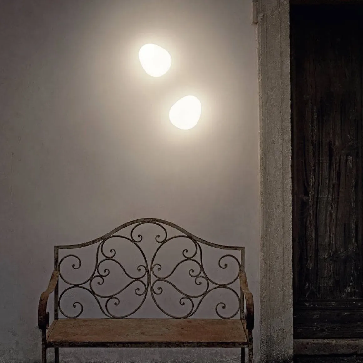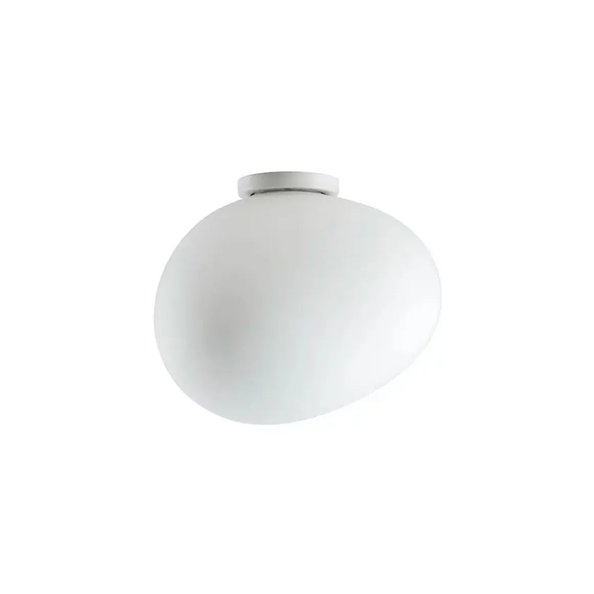 Gregg est une gamme de luminaires design dessinée par Ludovica + Roberto Palomba pour Foscarini. En verre soufflé-bouche, ce plafonnier est comme un gros caillou travaillé par le ressac de la mer. Satiné, il offre une forme organique, élégante et ne réfère pas à la géomètrie pure.