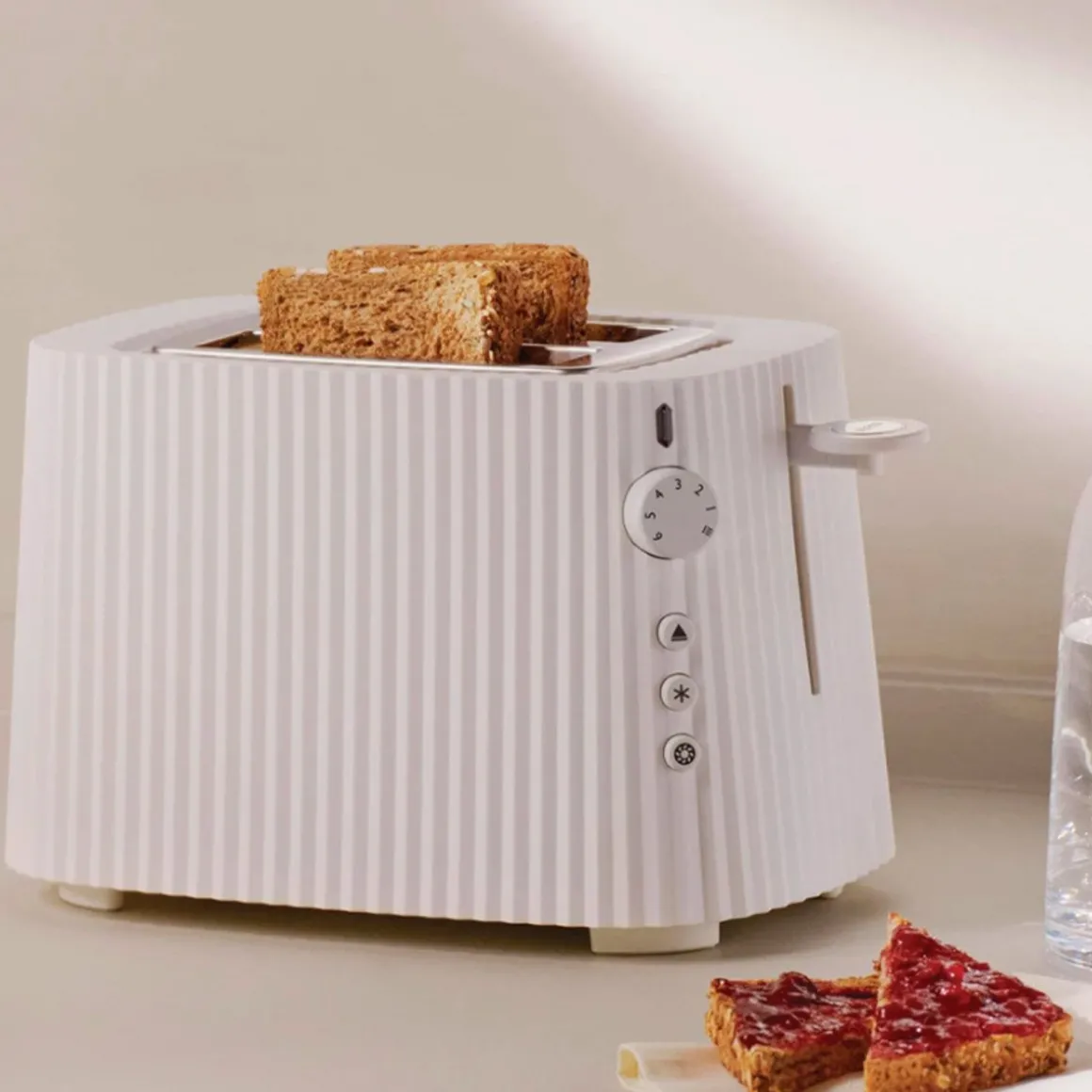 Le grille-pain de la collection Plissé est un objet au design élégant : sa surface plissée vous invite à l’exposer sur les étagères de la cuisine.