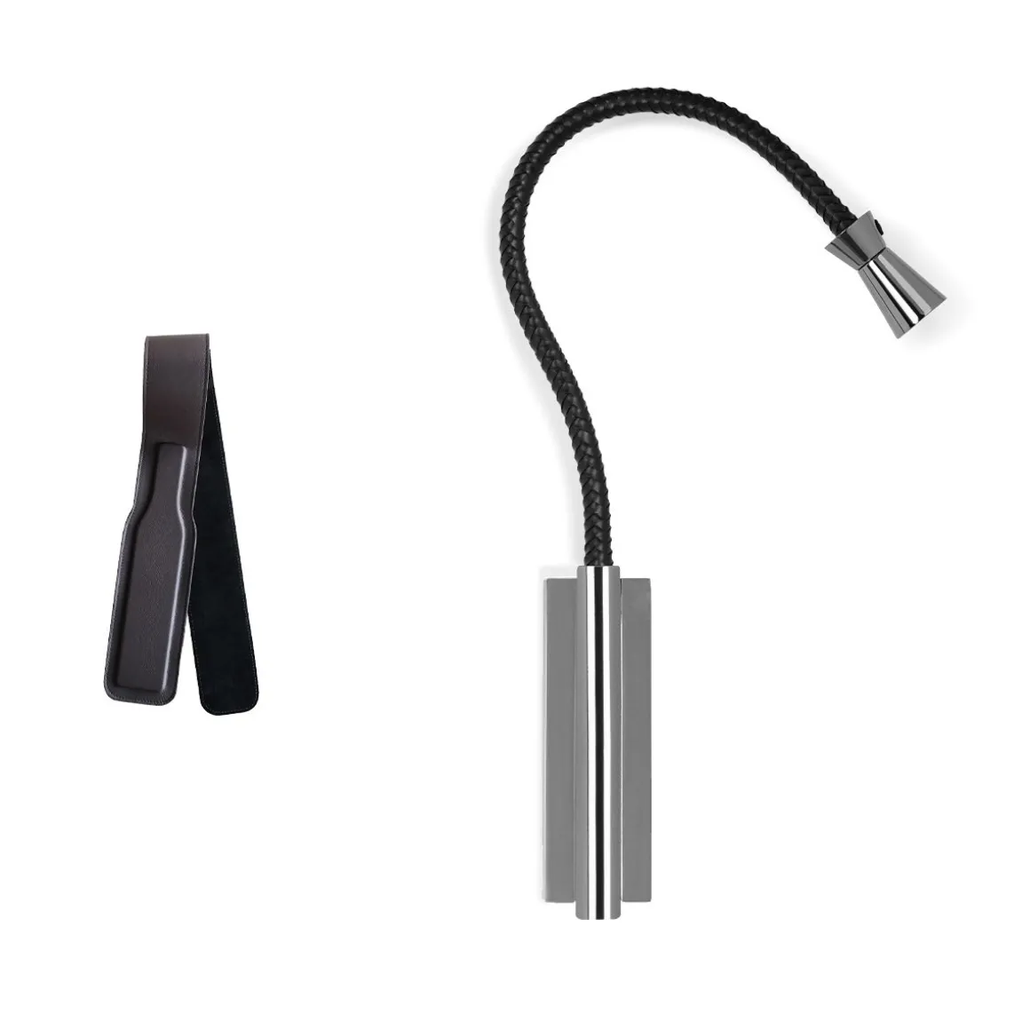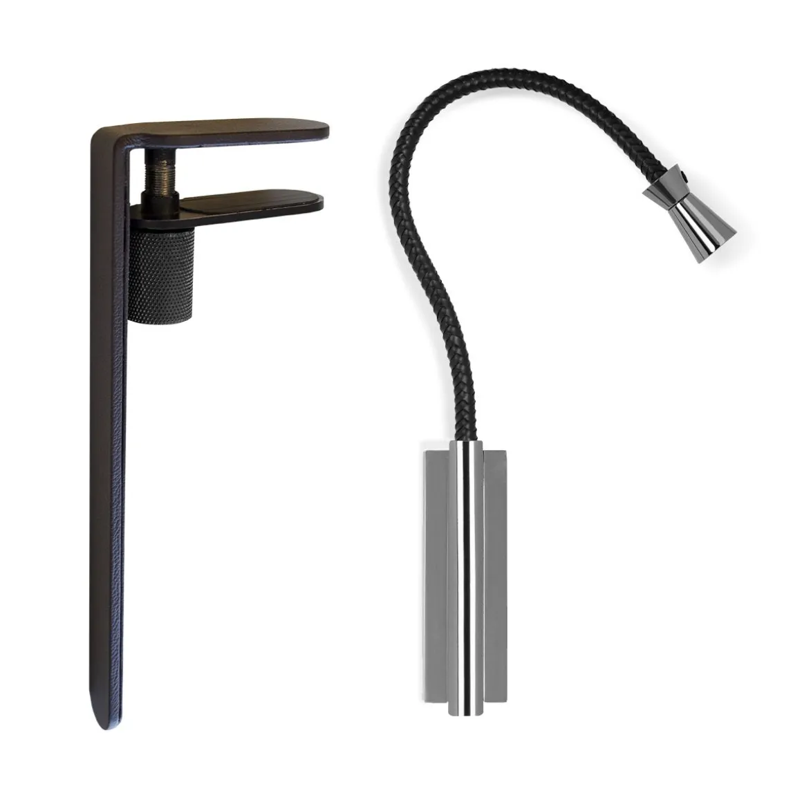 Une lampe de lecture innovante, née de l’idée d’un produit portable et luxueux pour répondre aux besoins spécifiques d’espace et d’installation ; ceci le rend approprié aux contextes tels que des yachts et des superyachts, des bâtiments historiques, ou des boutiques exclusives. La tête rappelle un cocktail jigger (comme le suggère le nom G+T, ou gin & tonic), et le bras est en laiton recouvert de cuir tressé. Disponible en version batterie avec connexion magnétique ou en version murale. Le modèle alimenté par batterie est rechargeable via le port USB Type-C (qui dans la version filaire sert à recharger les smartphones ou les tablettes). La commande (avec trois niveaux d’intensité) est idéalement positionnée sur la tête. La version à piles est livrée avec les accessoires suivants : un support mural, un support pour la fixation de table et une poche en cuir avec contrepoids pour un accoudoir de fauteuil/canapé.