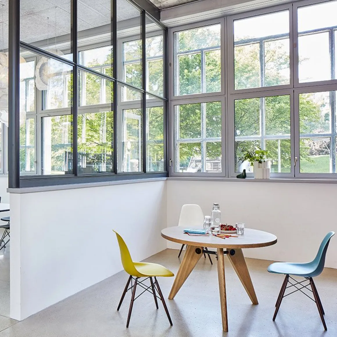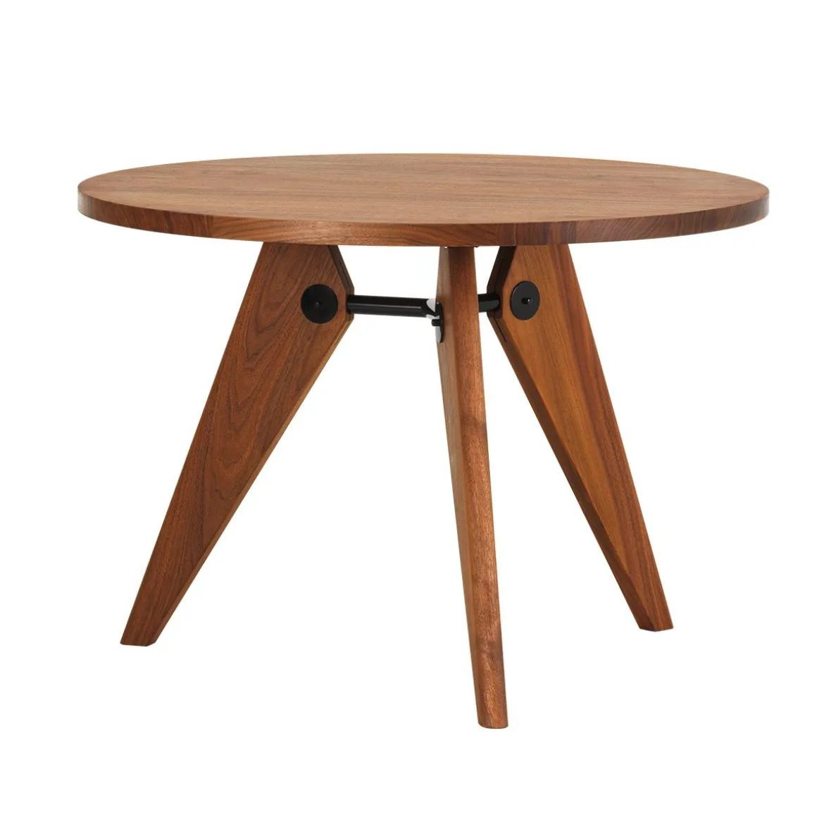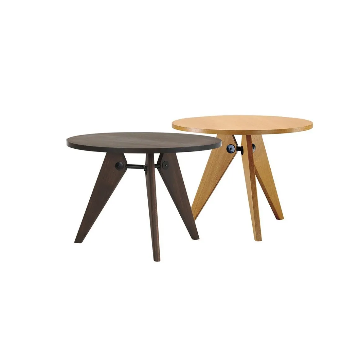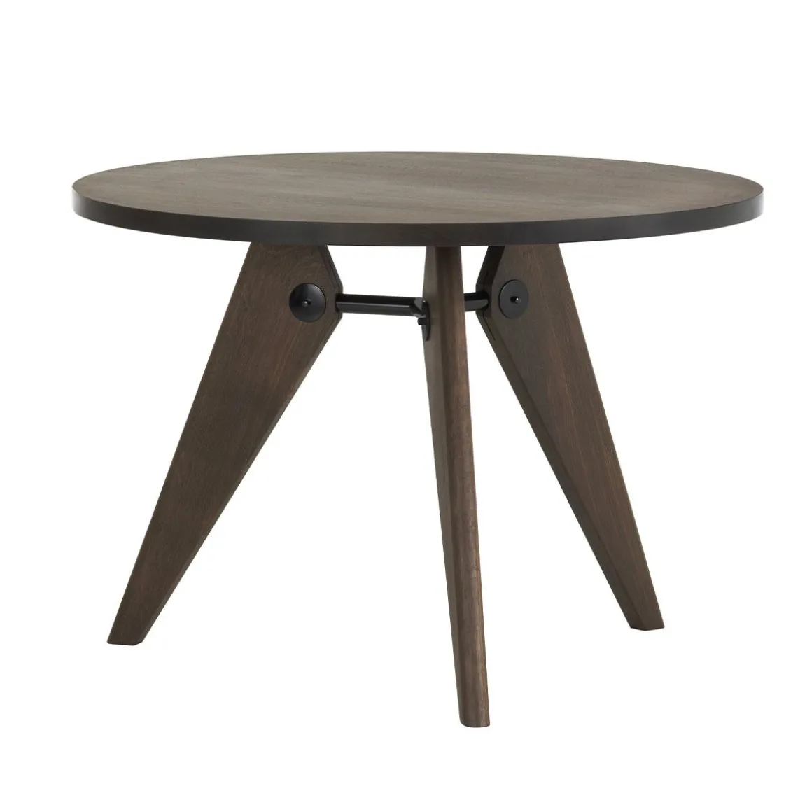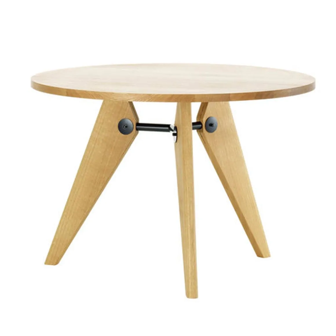 Guéridon est une table en bois qui a été produite par le designer et ingénieur Jean Prouvé pour l’Université de Paris. Elle en est la démonstration convaincante de principes structurels clairs. Elle décline plutôt dans un matériau naturel le langage formel de Prouvé fortement influencé par l’architecture ; elle est la preuve que les tables modernes ne doivent pas être obligatoirement faites d’acier et de verre.