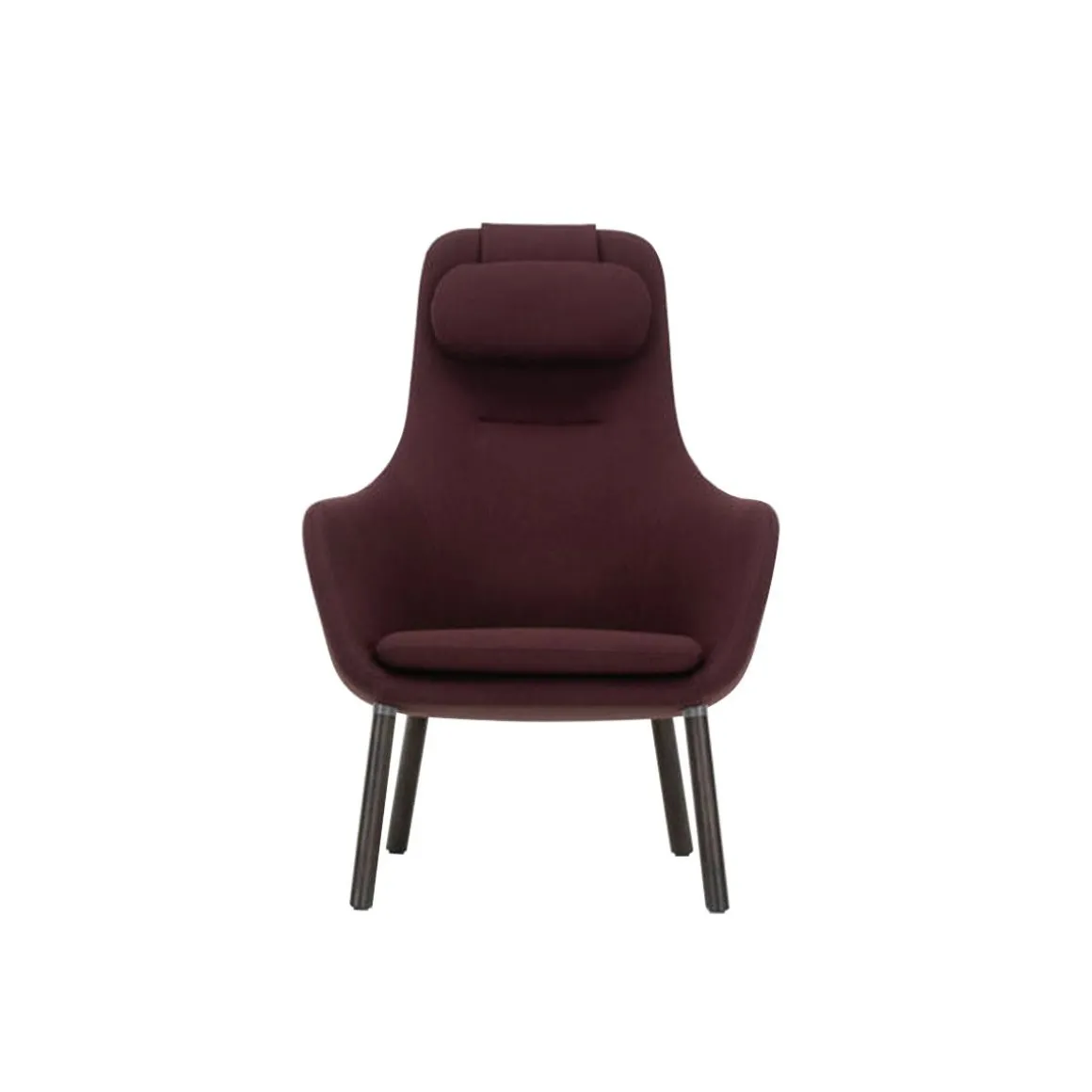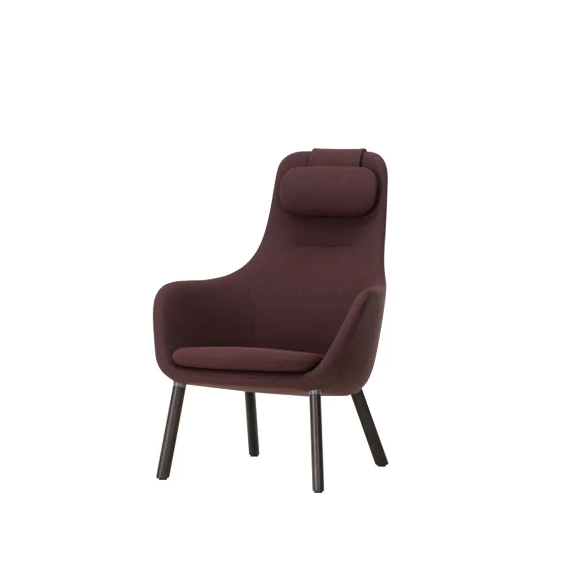 Le HAL Lounge Chair compact (2021) est la réinterprétation par Jasper Morrison du fauteuil à quatre pieds au rembourrage doux et dossier haut.