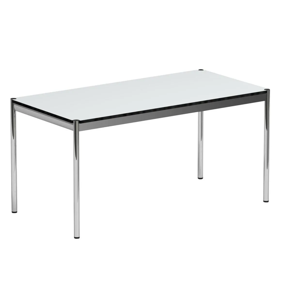 La table USM Haller est constituée de quatre piétements tubulaires avec vérins de réglage et d’une ceinture porteuse en acier chromé. Les plateaux, déclinés en plusieurs dimensions, coloris et matériaux viennent parfaire cette conception épurée. Utilisable en table de repas ou table de conférence, la table USM Haller se dote en option d’une multitude d’accessoires lorsqu’elle devient poste de travail.