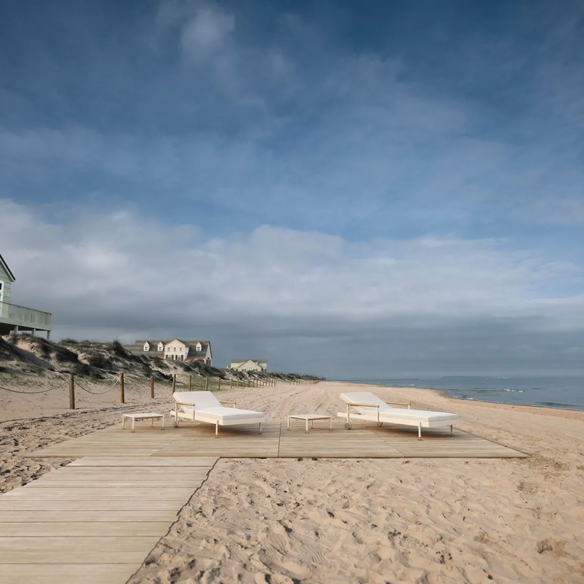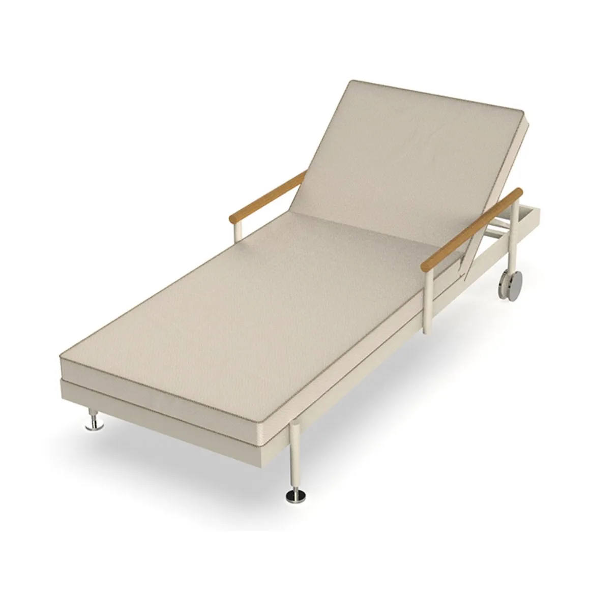 La chaise longue Hamptons est dotée d’une structure robuste en aluminium, gage de durabilité et de solidité. Les accoudoirs, soigneusement fabriqués en teck, apportent une touche d’élégance et de chaleur à son design. De plus, elle est équipée de pieds et de roulettes en aluminium poli, ce qui la rend facile à déplacer et à adapter à différents environnements. Un équilibre parfait entre fonctionnalité et style pour profiter du plein air avec confort et raffinement.