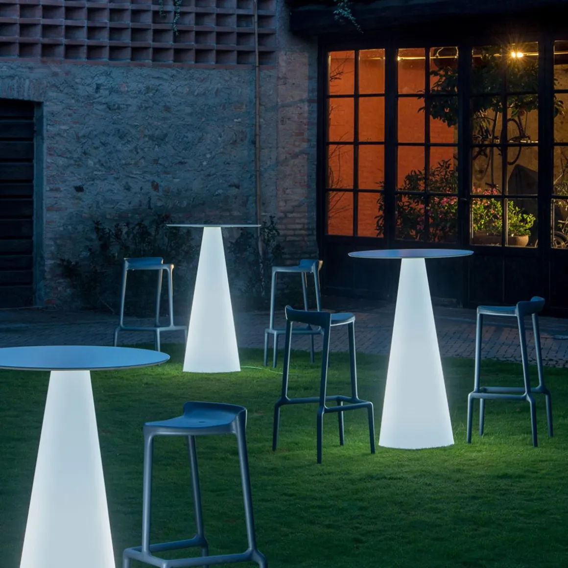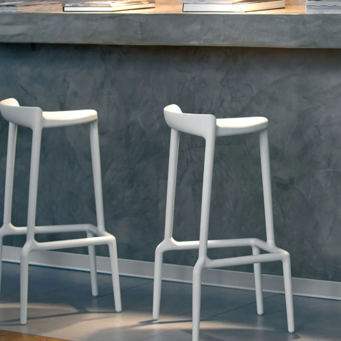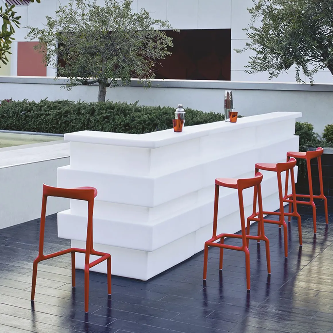Un tabouret haut et empilable et, sans base, une assise basse. Jeune et coloré il est réalisé entièrement en polypropylène avec l’aide du gas pour le rendre plus léger, rigide et résistant. Apte pour l’extérieur.