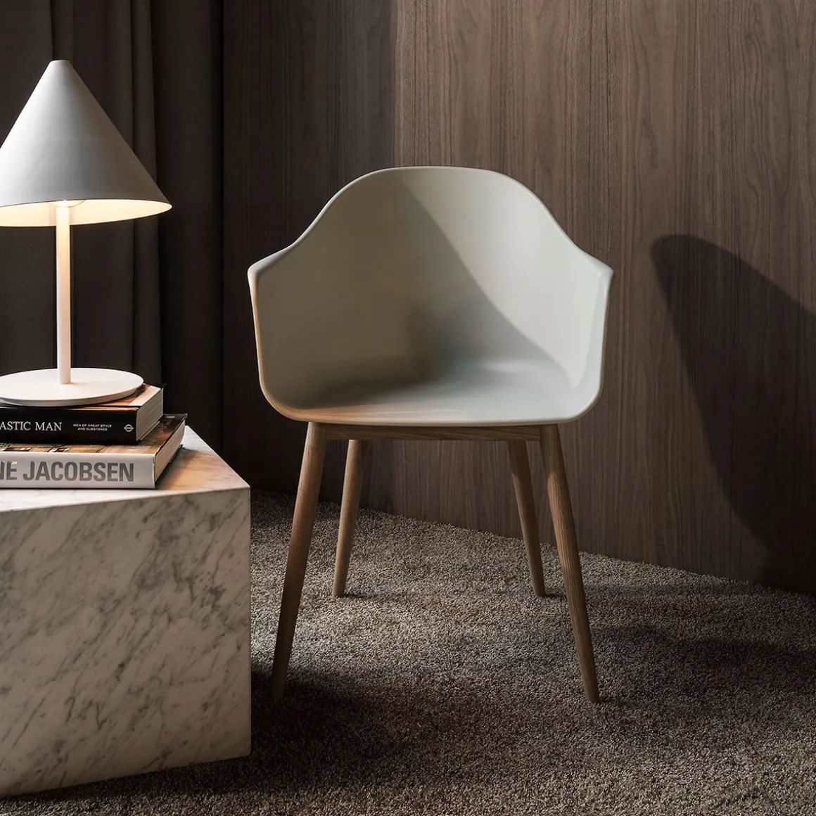 Conçue dans le quartier prospère de Nordhavn (Harbour Nord) à Copenhague, la chaise Hrabour est le résultat d’une variété de besoins (entre autres) de polyvalence confortable.