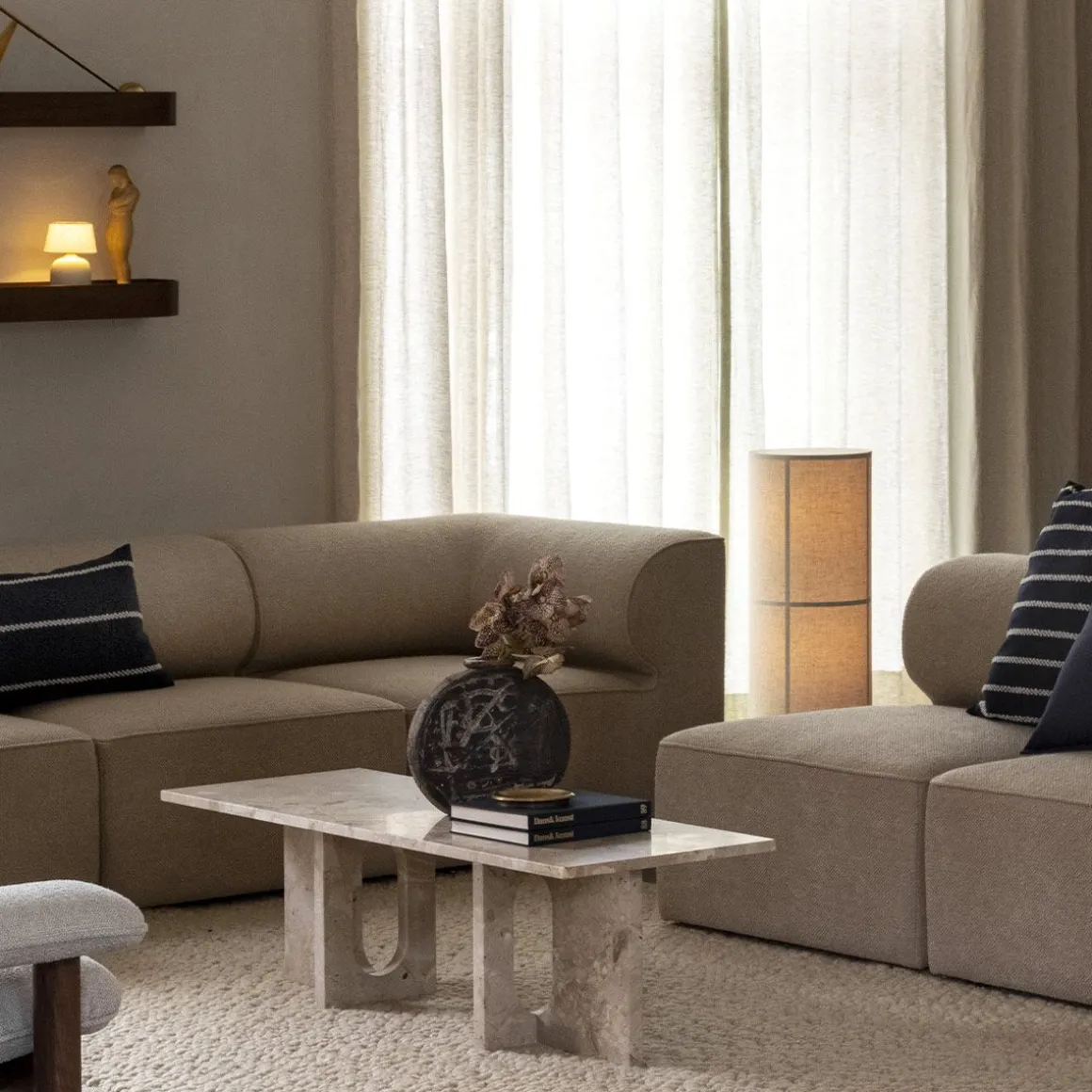 S’élevant majestueusement du sol, la silhouette cylindrique de l’itération du lampadaire Hashira est combinée avec des éléments d’abat-jour en textile occidental pour donner au design une sensation familière. L’abat-jour en tissu translucide agit non seulement comme un diffuseur, projetant la lumière dans plusieurs directions tout en créant une ambiance chaleureuse et sans éblouissement, il ajoute également un attrait palpable qui améliore la douceur d’un intérieur – acoustiquement et tactilement.