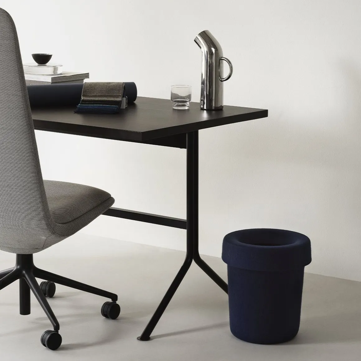 Hide office de Normann Copenhagen par Simon Legald. La poubelle Hide Office est une poubelle élégante et fonctionnelle, au design épuré et pratique. Son couvercle amovible permet de fixer facilement un sac plastique à l’intérieur, facilitant ainsi sa manipulation et son élimination. Cette poubelle est fabriquée en feutre PET souple et résistant, fabriqué à partir de bouteilles en plastique recyclées.