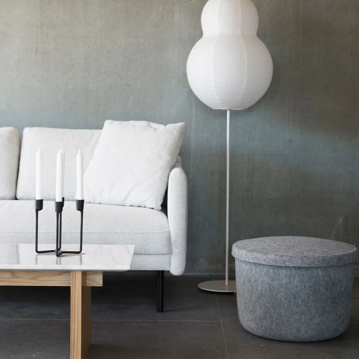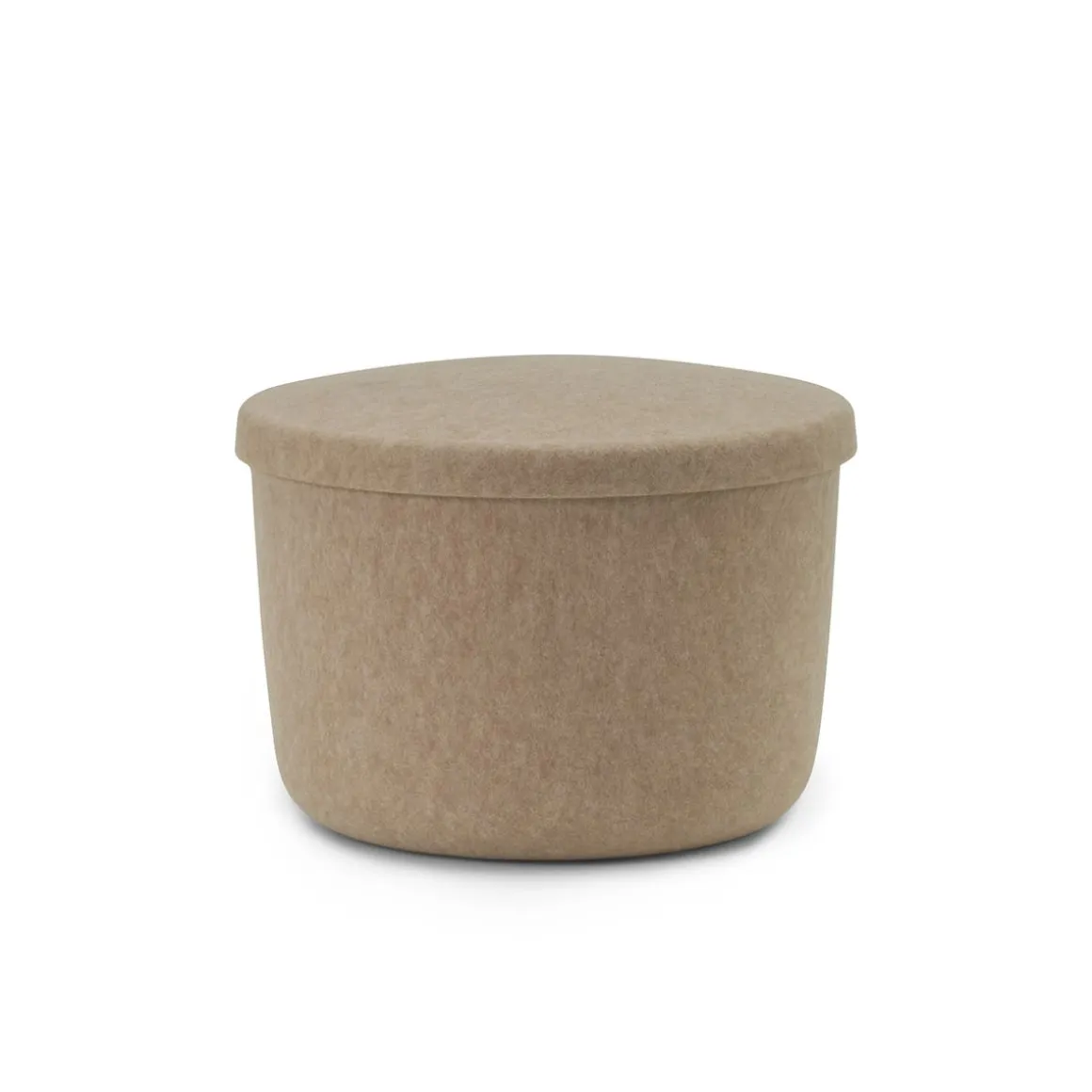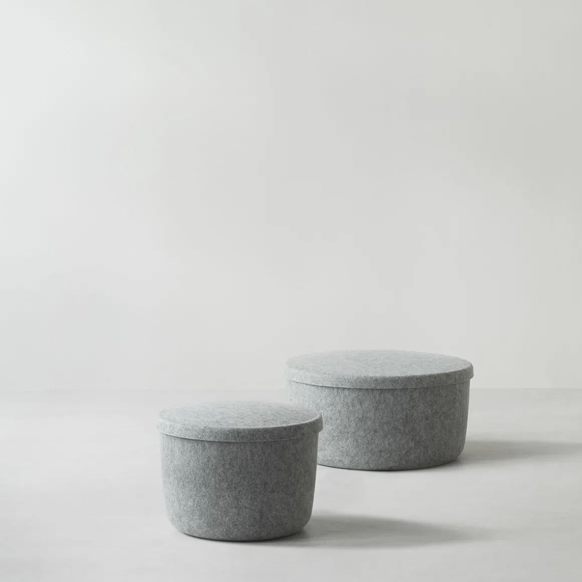Hide Storage Pouf est un pouf et un rangement en un. Hide est fabriqué à partir de feutre PET, qui se compose de bouteilles en plastique post-consommation extrudées en fibres de polyester puis pressées en feutre. Le siège du pouf peut être retiré, révélant l’espace creux à l’intérieur qui rend la conception pratique à des fins de stockage.