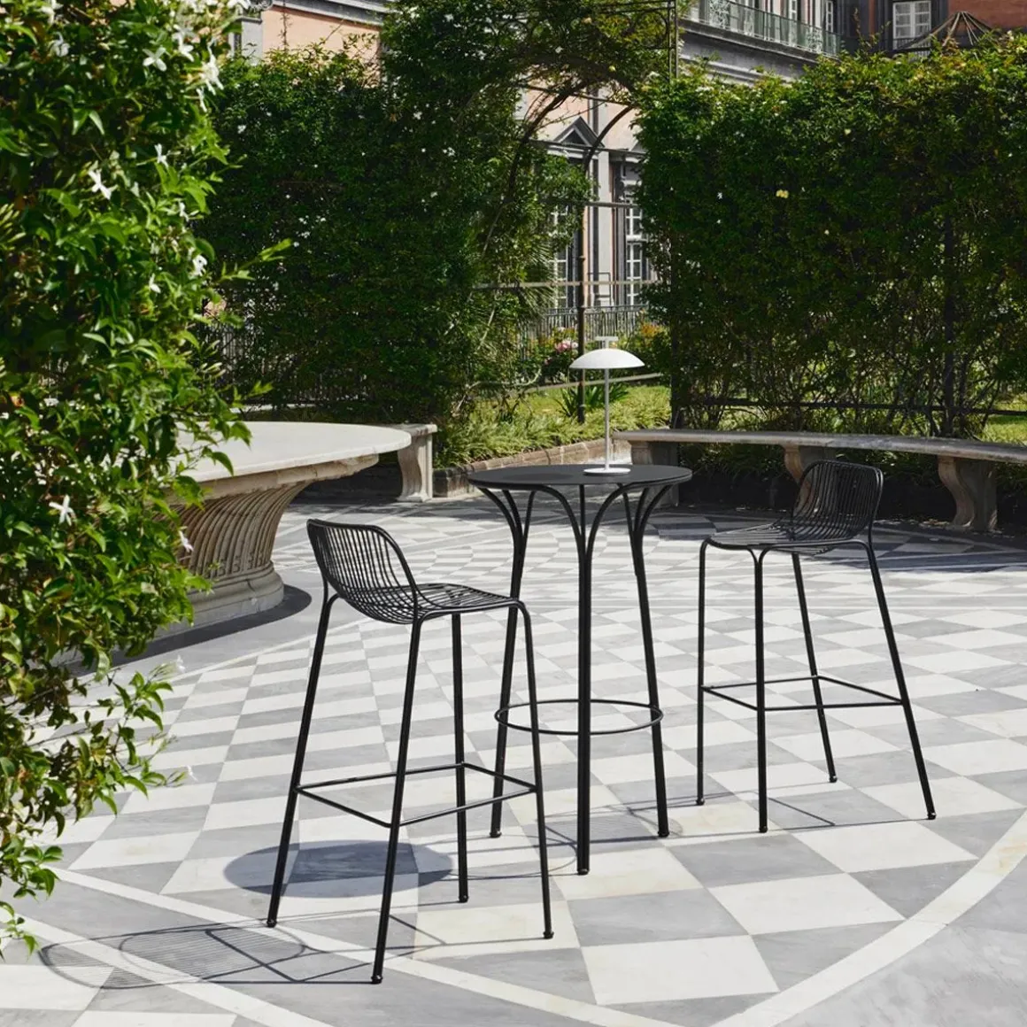 Hiray de Kartell par Ludovica+Roberto Palomba. La ligne HIRAY de Ludovica+Roberto Palomba multiplie sa capacité à créer des extérieurs aux ambiances raffinées et sophistiquées. Parmi les nouveautés de cette année figurent la TABLE et les TABOURETS pour s’amuser à personnaliser les solutions les mieux adaptées à votre rêve en plein air. Les nouvelles solutions d’ameublement, qui complètent la famille HIRAY, créent une ambiance décontractée et élégante, idéale pour les bars lounge et l’hôtellerie. La collection est fabriquée avec des fils soudés, une technique qui lui confère un style essentiel, fonctionnel et également imprégné d’émotion. Le métal utilisé dans les collections Kartell, travaillé avec des techniques industrielles typiques de l’ADN de la marque, fait partie de la recherche entamée par l’entreprise il y a des années sur les matériaux durables et recyclables s’ils sont éliminés correctement.