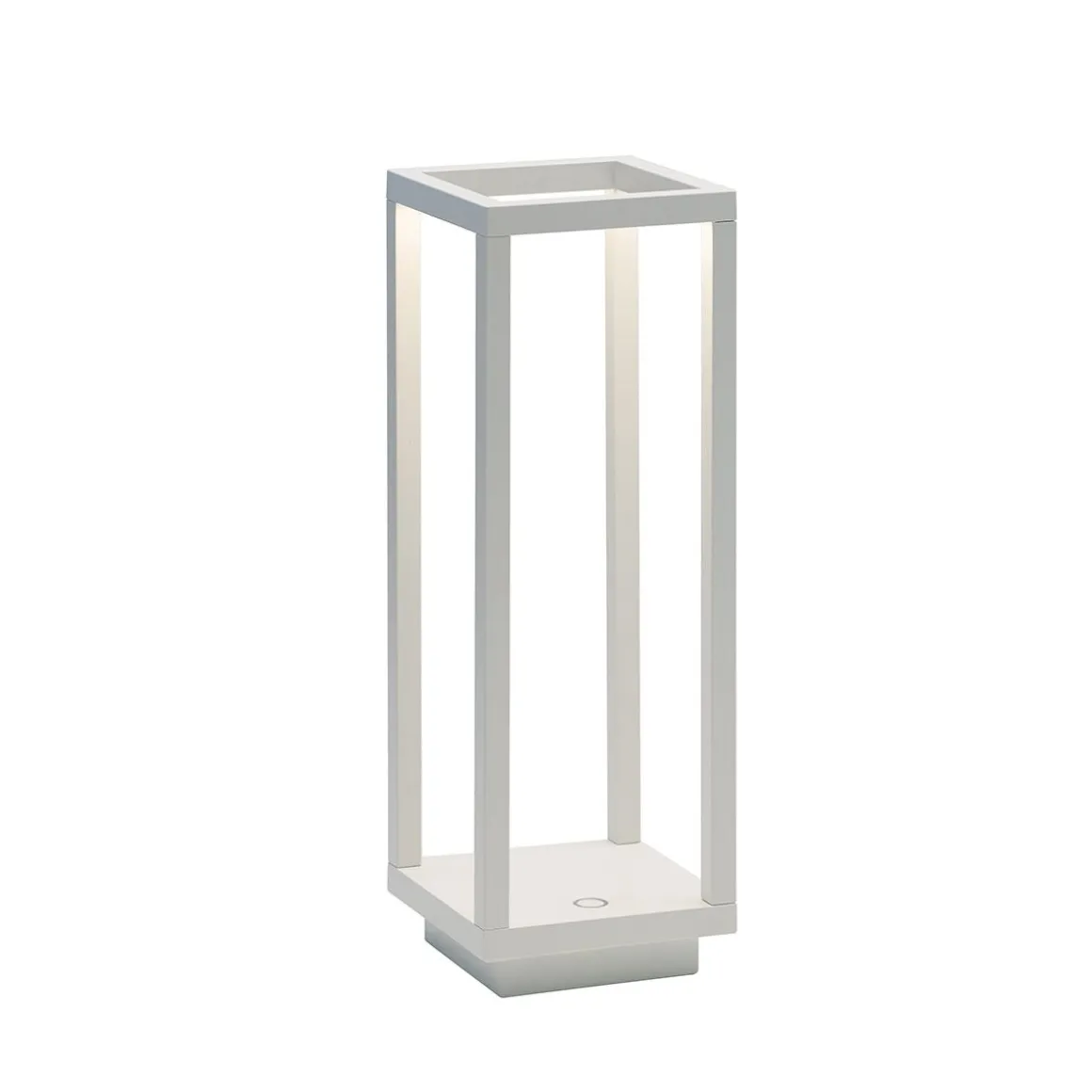 Home est une lampe de table pratique à piles dont les formes essentielles et géométriques rappellent celles d’une lanterne contemporaine. La sources LED est logée dans la partie supérieure de la structure en aluminium et émet une lumière directe vers le bas. Utilisable également en extérieur, grâce à l’indice de protection IP54, Home est disponible en trois coloris : blanc, gris foncé et corten. Un bouton tactile situé sur la base de commende l’allumage et l’extinction et permet le réglage de l’intensité lumineuse (dimmer). La batterie, avec la lumière réglée à la puissance maximale, dure environ 12 heures ; pour la recharger complètement (à 1A, sur le socle spécial contacts) il en faut 6. En fin de vie, les piles en lithium sont remplaçables.