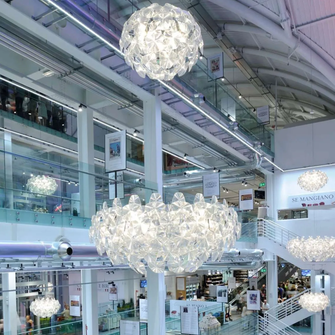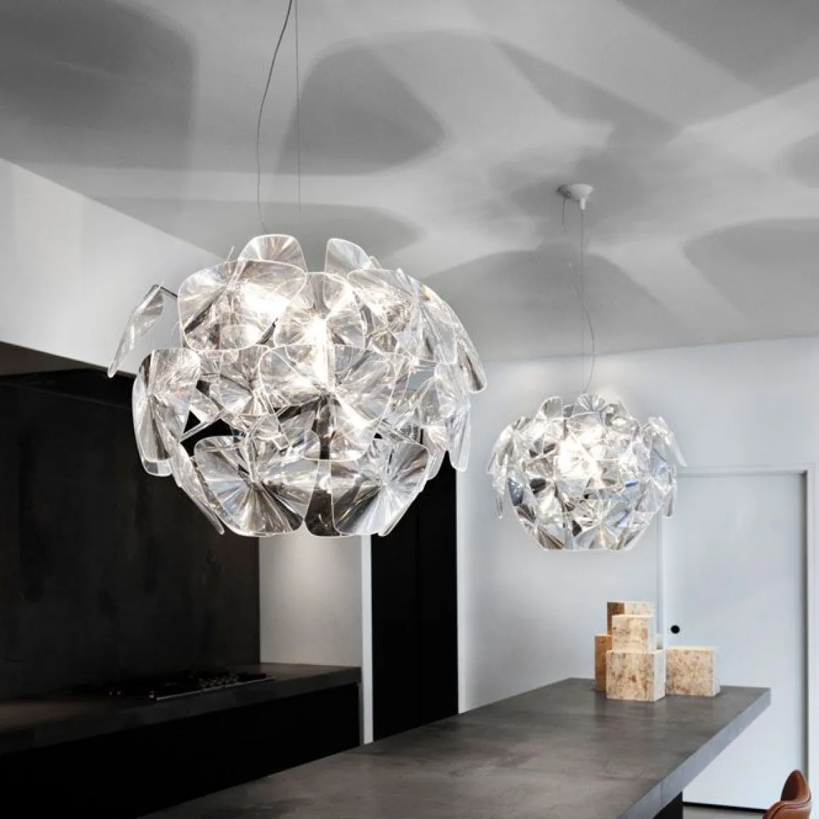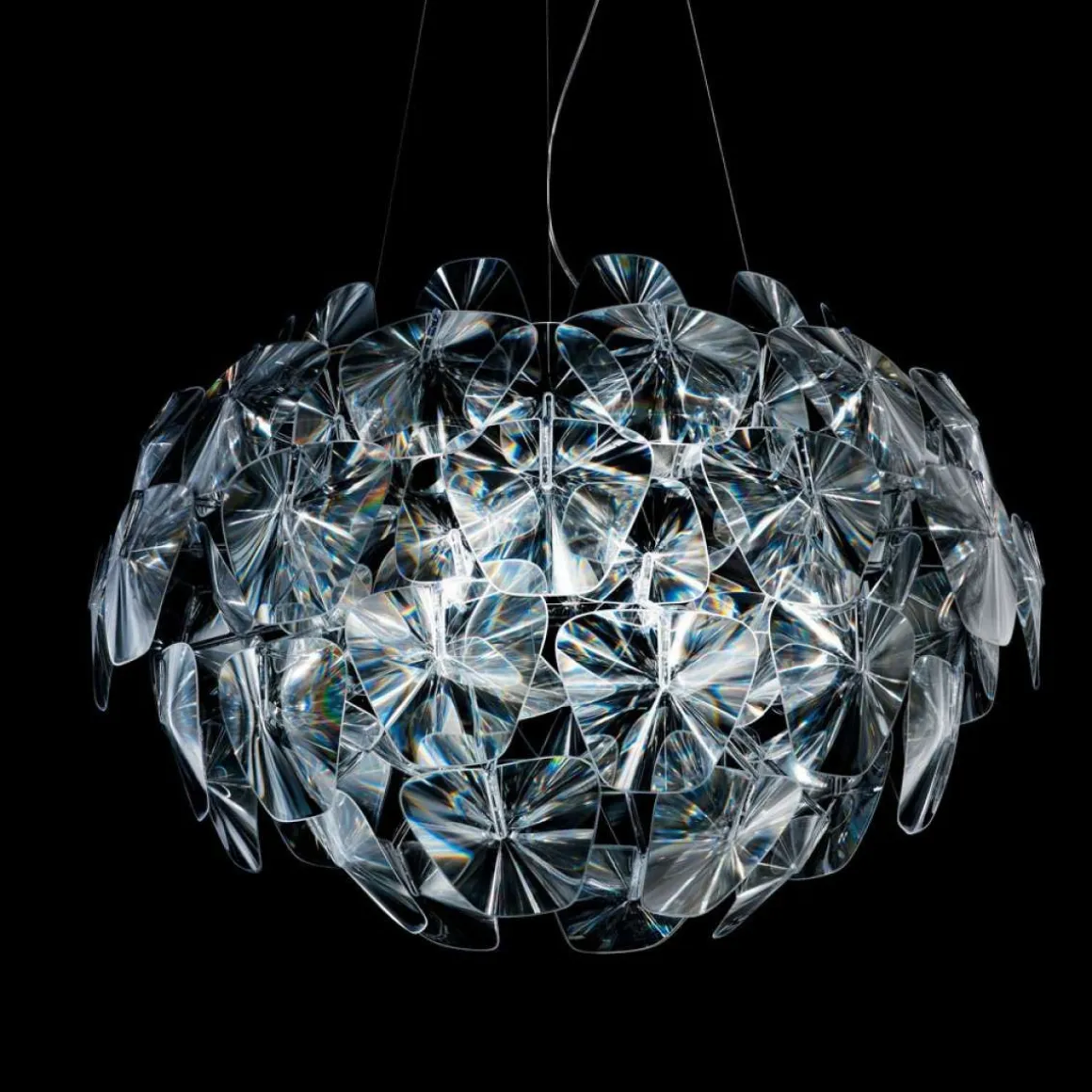 Hope est une suspension de Luce Plan par le designer Francisco Gomez Paz & Paolo Rizzatto en 2009. Elle est incroyablement légère et facile à assembler et représente la magie des lampes traditionnelles, les réinterprétant avec des technologies de pointe et des matériaux contemporains. Une série de fines lentilles Fresnel en polycarbonate créées afin de parvenir à un effet similaire au verre (sans aucune limitation en termes d’espace, de l’épaisseur et le poids) et de multiplier de la source de lumière. Pouvoir recréer un cadre agréable parsemé de milliers de fragments de lumière comme le diamant qui a inspiré son nom: Hope.