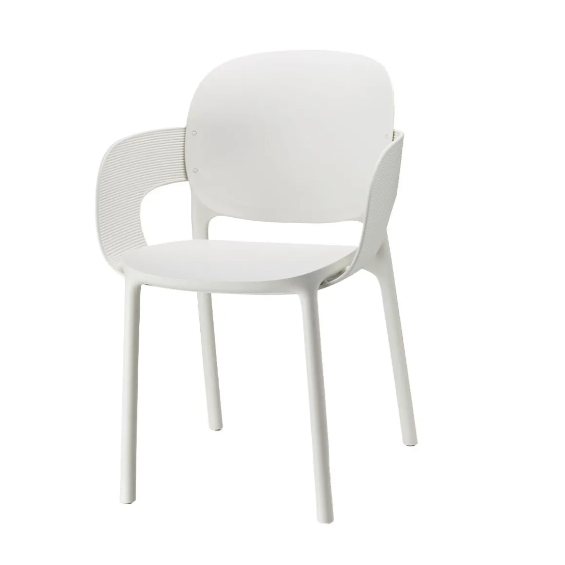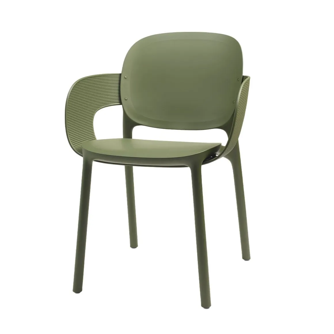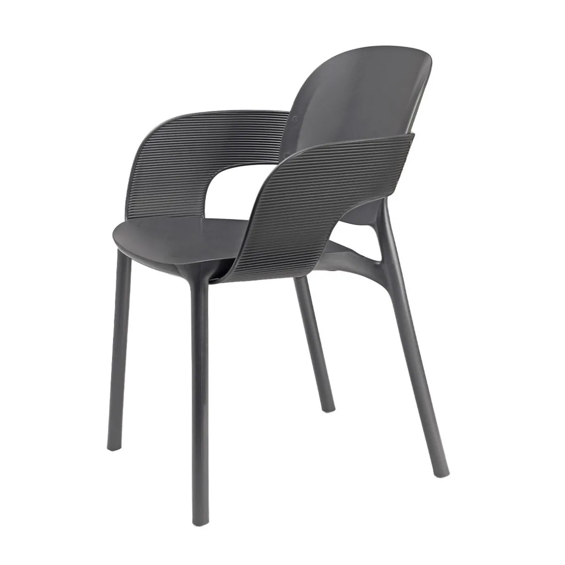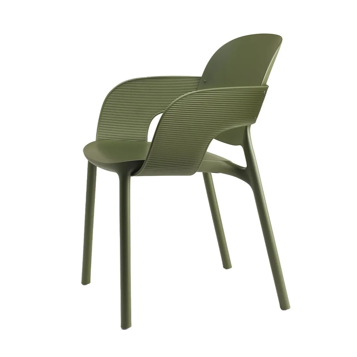 Pour HUG, chaise et fauteuil, un élément extrêmement distinctif a été pensé: entre l’assise et le dossier, aux formes arrondies et en équilibre pour une meilleure utilisation, les designers ont introduit un élément à bande, enveloppant comme une accolade. Un confort à apprécier aussi bien à l’extérieur qu’à l’intérieur, selon la tendance désormais consolidée de traiter les environnements avec les mêmes codes esthétiques. Il existe deux variantes: on pourra opter pour une version entièrement en technopolymère particulièrement graphique et belle à regarder sous tous les angles, définie par un motif à rayures en relief sur toute la longueur de la bande; ou une plus gracieuse avec l’ajout d’un coussin d’assise et d’une bande rembourrée tapissée de tissu, pour augmenter l’effet de confort enveloppant.