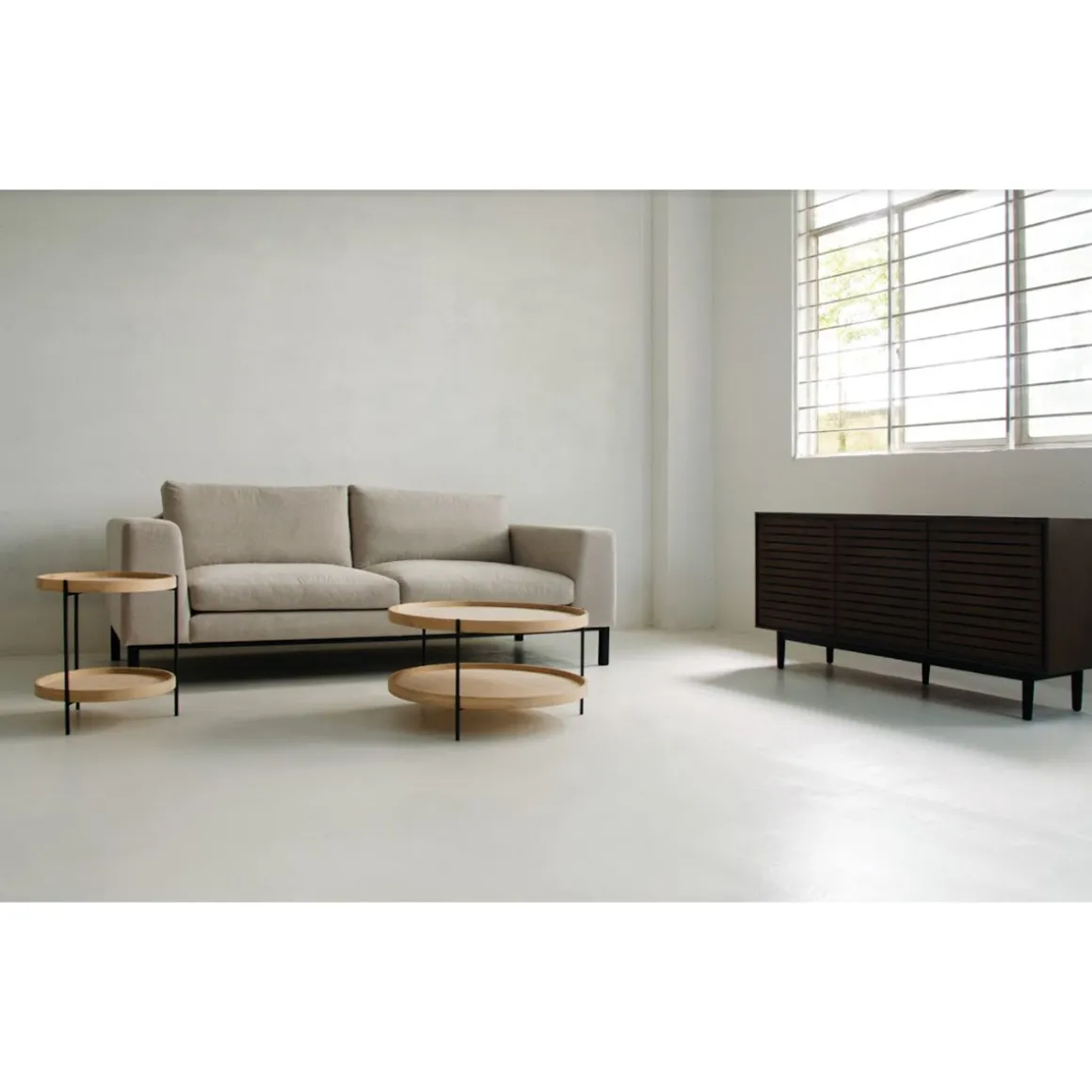 La Table Basse Hum Ronde incarne l’épure du design scandinave, injecté d’une touche d’esprit industriel. Cette table Altassina se distingue par une silhouette unique d’une très grande finesse, portée par une structure métallique aux lignes minimalistes. Les plateaux ronds (en bois teinté ou naturel) apportent une douceur visuelle immédiate, contrastant avec la rigueur du métal. Ses matières brutes, pleines de caractère, sont parfaites pour sublimer la décoration de votre salon, créant une ambiance à la fois contemporaine et chaleureuse. Le design Hum est une célébration de la simplicité et de l’harmonie. Convivialité et Flexibilité de l’Espace