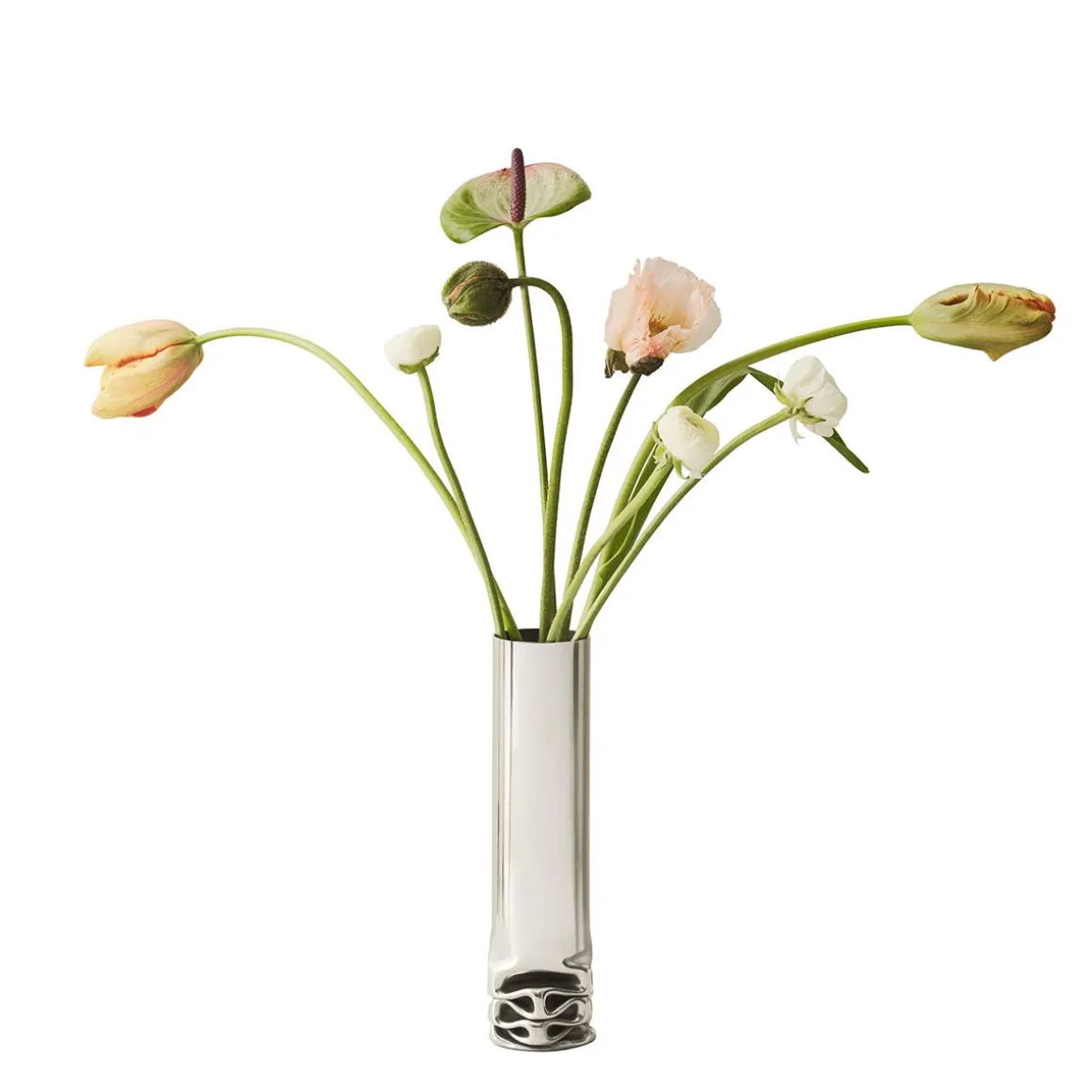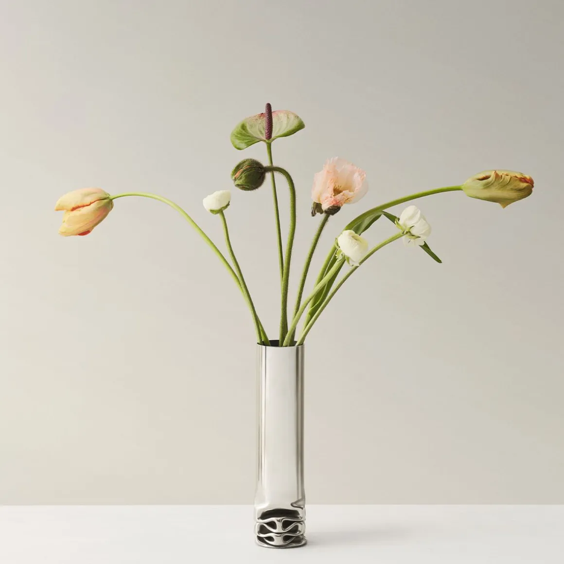 Le vase hydraulique d’Isa Andersson est une fusion de fonction et de forme, un vase et une sculpture en même temps. Grâce à un processus délicat, chaque vase aura sa propre expression unique où aucun ne ressemble exactement à l’autre. Le tube en acier inoxydable avec sa base déformée témoigne d’une pression énorme appliquée, apprivoisée et transformée en un vase élancé, présentant une impression forte mais douce. Brut et sensuel à la fois, le vase est façonné dans un seul matériau et exposera avec bonheur des fleurs de toutes sortes. Isa Andersson est diplômée de l’école de design Beckmans en 2016. « J’ai été fascinée par toutes les vidéos montrant ce que l’on peut faire avec des presses hydrauliques », se souvient Isa. « Habituellement, on extrait des roulements à billes, mais on peut tout faire ! » Isa Andersson, avec Johan Krantz, a visité des ateliers de réparation automobile dans tout Stockholm, qui ont eu du mal à comprendre leur projet, bien qu’ils aient reconnu leur besoin d’une presse plus puissante que celle dont l’école disposait. « C’est un processus difficile ; Il faut être doué en mathématiques. Il faut recalculer l’ensemble du processus si l’on modifie l’épaisseur du matériau d’un millimètre seulement avant d’appliquer la pression. » Le design d’Isa Andersson est un véritable solitaire qui amplifiera le contraste entre la forme artificielle et les bouquets en fleurs de la nature. « Je voulais conserver la sensation rugueuse de cette base presque fondue, tout en renforçant le contraste entre le dur et le doux », explique Isa Andersson. Hydraulic présente une forme unifiée mais artistiquement transformée avec un récit fort. Le poids substantiel du vase lui assure une bonne stabilité et il ornera n’importe quel espace, qu’il soit rempli de fleurs ou non. Utilisez Hydraulic pour mettre en valeur des arrangements décoratifs ou laissez-le briller par ses propres mérites. Après avoir été produit dans son propre studio, Hydraulic va désormais atteindre un public plus large grâce à Design House Stockholm.