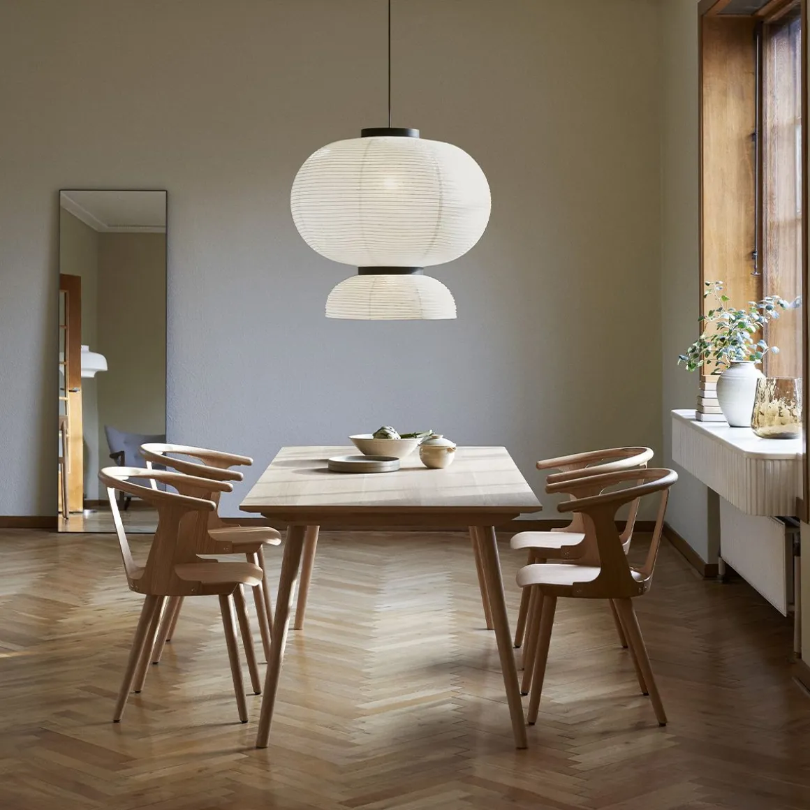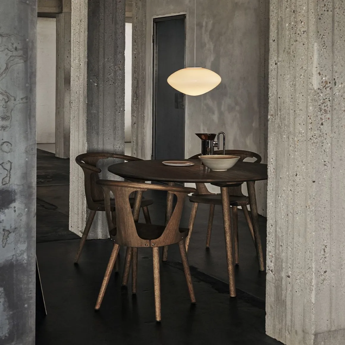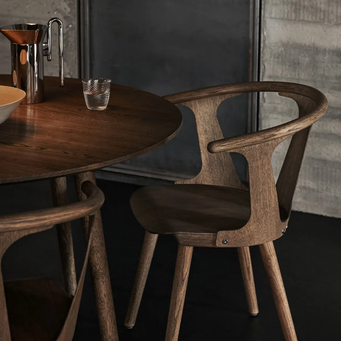 L’interaction entre l’espace positif et négatif est au centre de la chaise In Between, créée par Sami Kallio pour & Tradition. Son dos et les panneaux latéraux fournissent une forme et un soutien. In Between a une assise très légèrement en pente. Ses pieds à angle dynamique donne un équilibre aux formes ce qui en fait un classique du design contemporain. In Between a été créée à partir de deux techniques classiques : moulage par compression (ce qui rend le matériau léger et mince mais solide) et tournage sur bois (une technique pour obtenir plus de détails). Les matériaux sont le hêtre et le chêne, les deux répondent bien aux techniques utilisées. La production de In Between implique des procédés de fabrication industriels modernes et certaines interventions de la main de l’homme; une harmonie entre innovation et tradition. In Between fait un clin d’œil vers le passé tout en apportant une touche moderne et design à cette chaise.